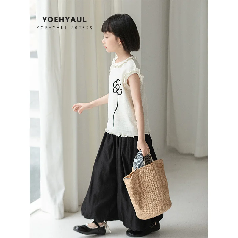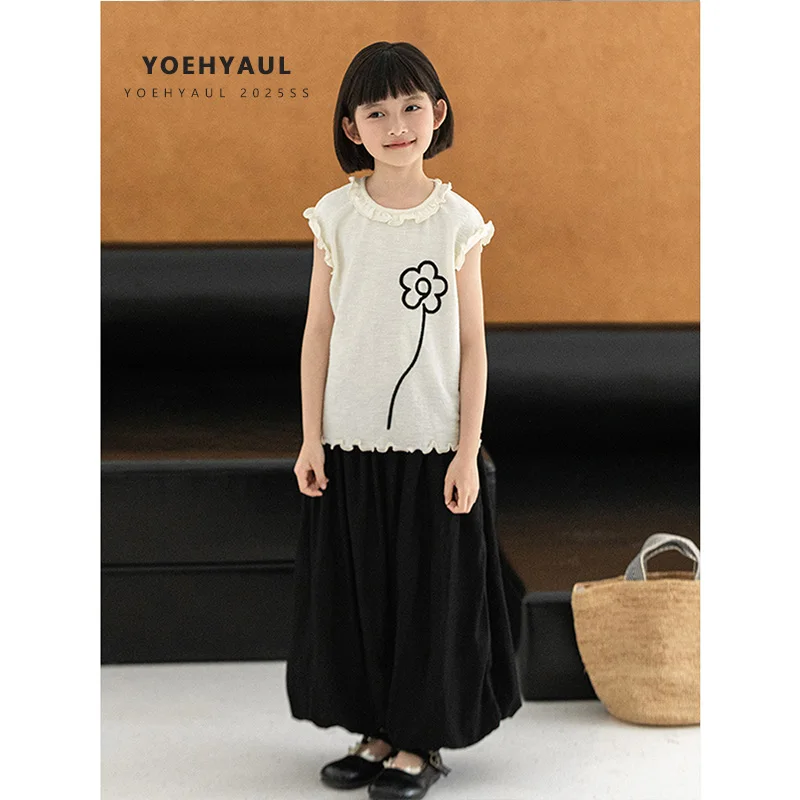 Girls Summer Apparel Set Customizable Cute Top and Skirt 3D Embroidery Fashion Outfit for Kids OEM