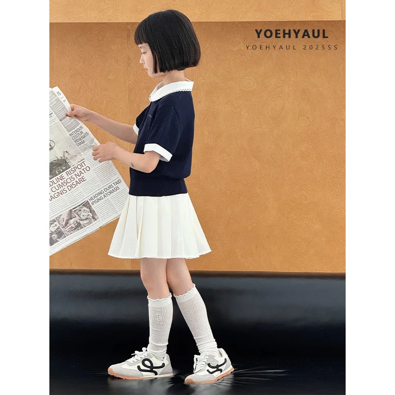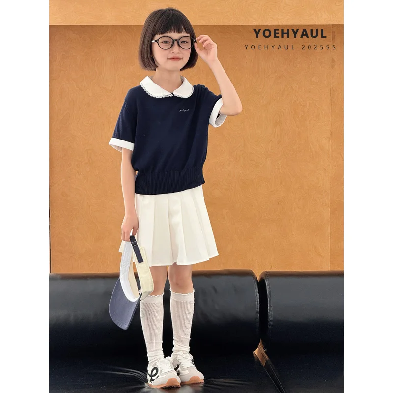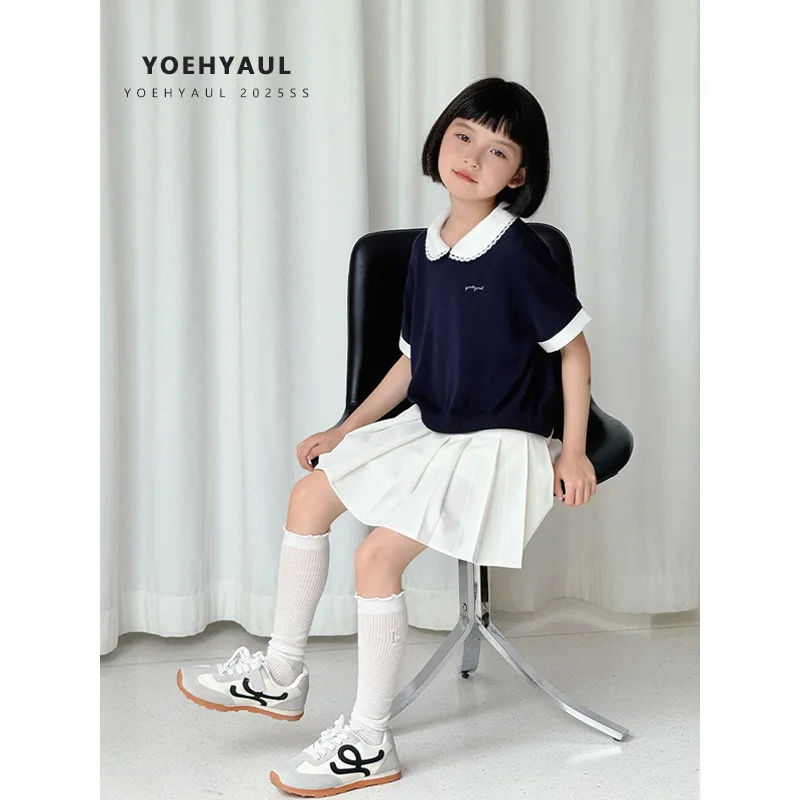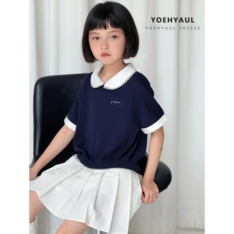 YOEHYAUL CD1639 Lycell Big Girls Tshirts Wholesale Peter Pan Collar with Lace Teenager Toddler Teens T-shirts T Shirt for Kids