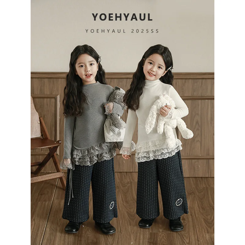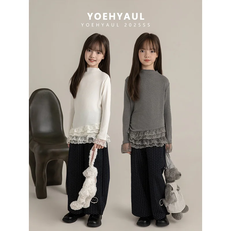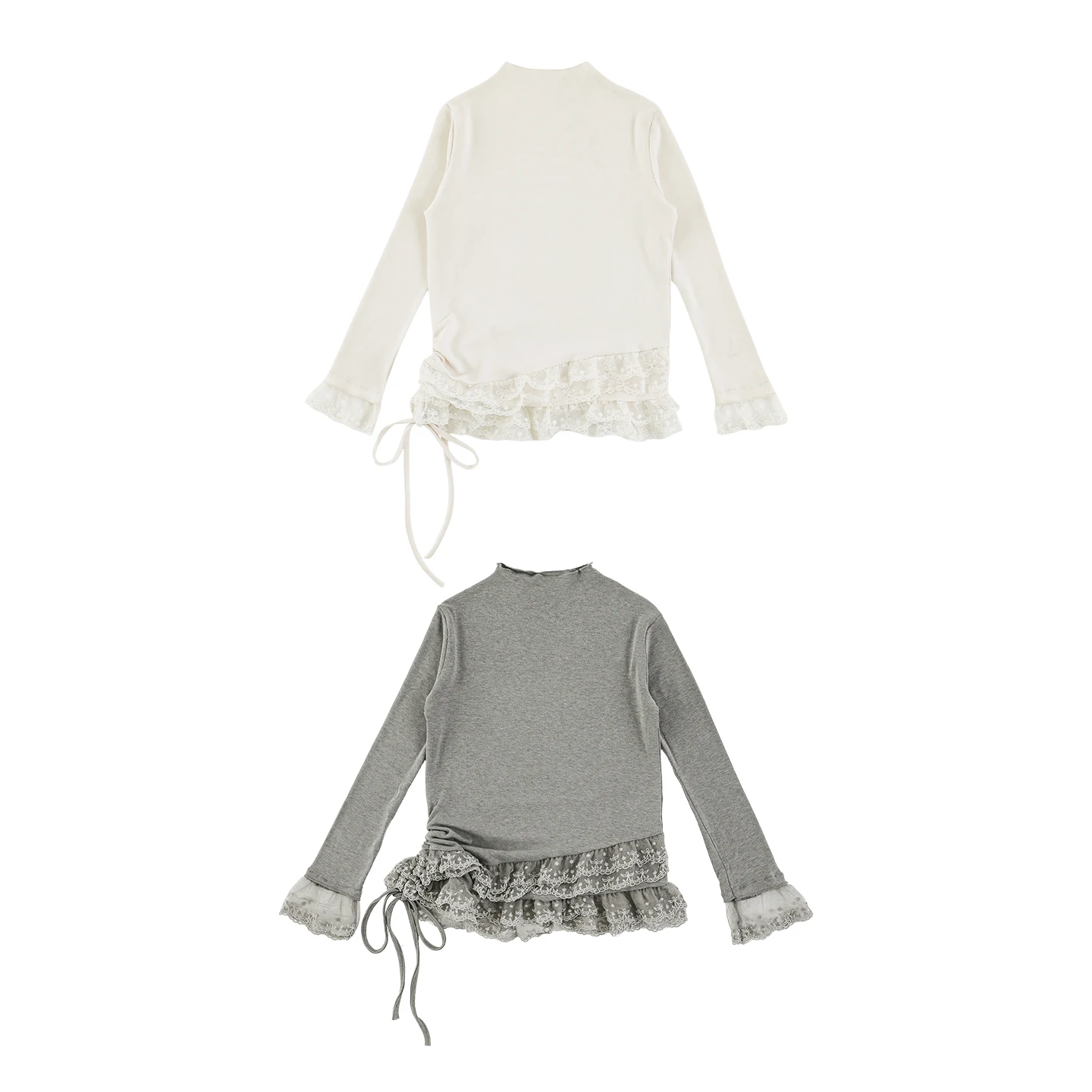 YOEHYAUL Q4654 1-14T Girls Half Turtleneck Long Sleeved Shirt Top Girls Tight Slim Fit Youth Teenager Shirt with Lace Ruffled