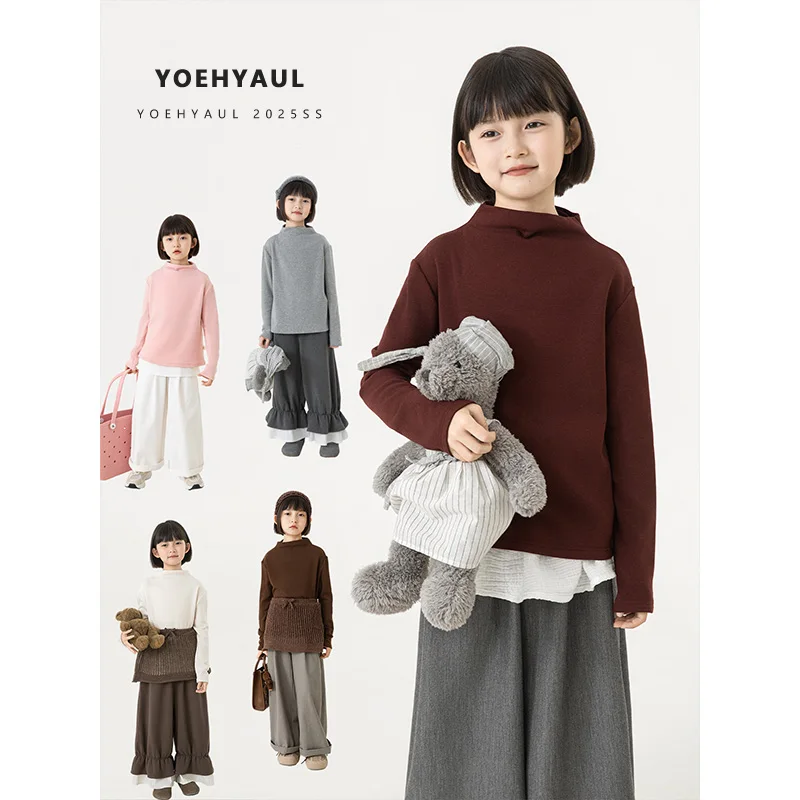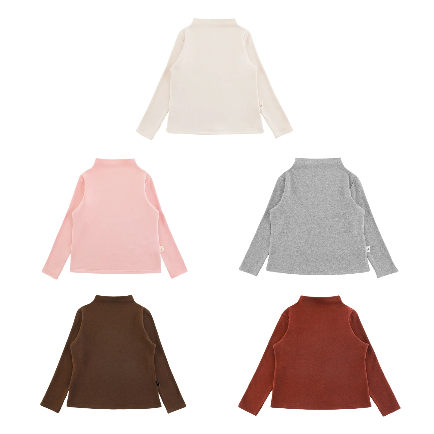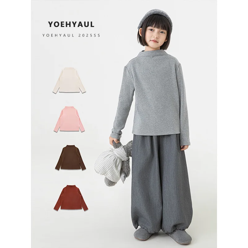 YOEHYAUL CD1908 4-16Y Solid Long-sleeved T-shirt Tops Girls Half-high Collar Tight Underwear Anti-pilling Pullover Teen T-shirt