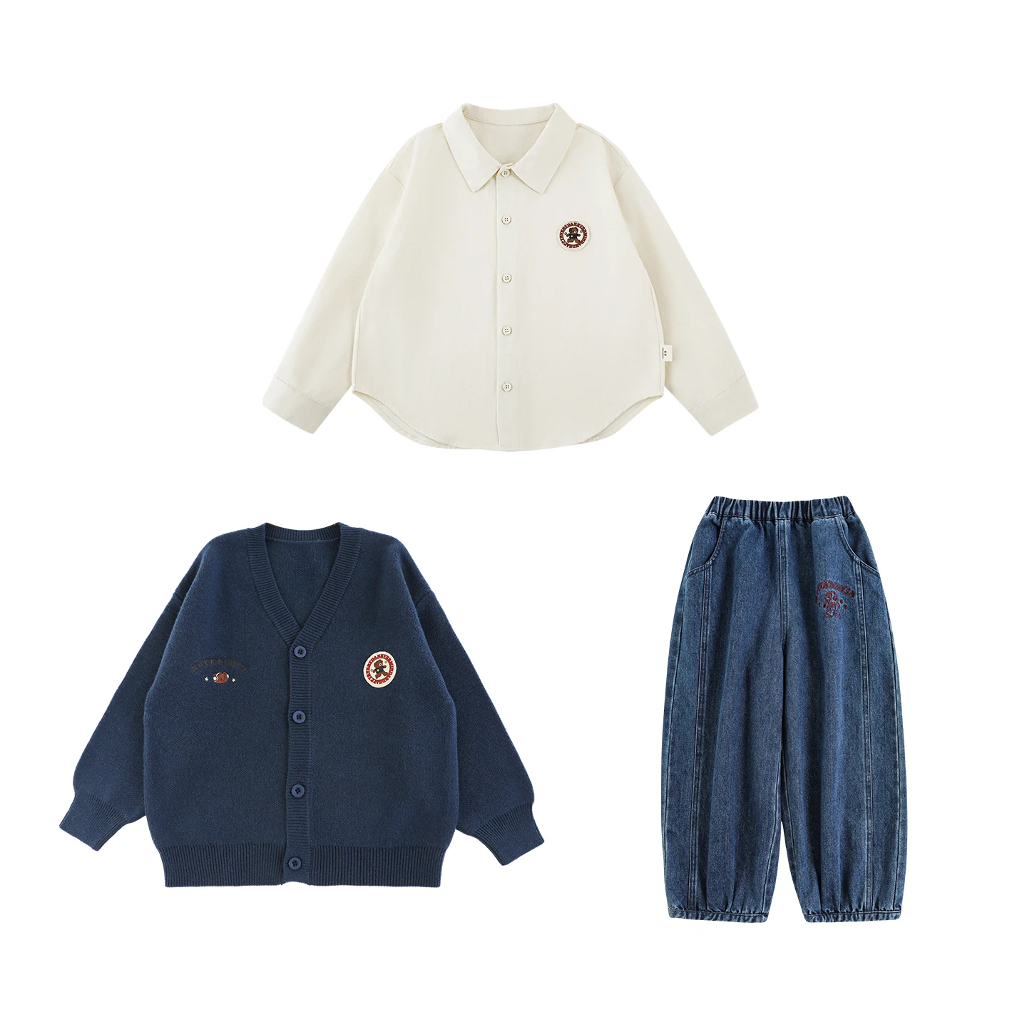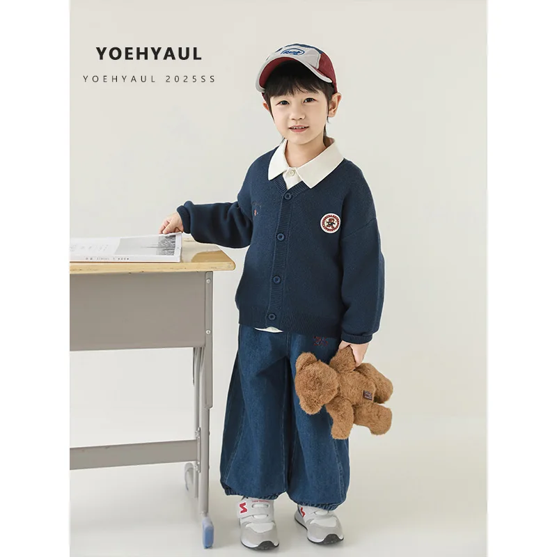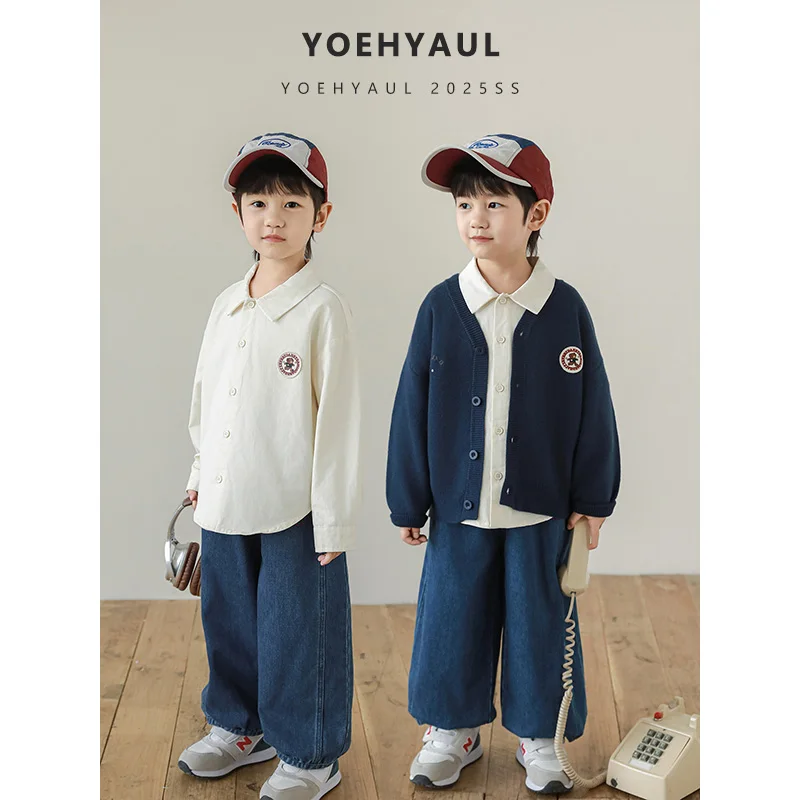 YOEHYAUL N6448 Casual Kids Boys Winter Sets Outfits Long Sleeved Shirt Sweater Jeans Toddler Boys Clothing Sets