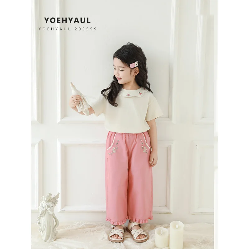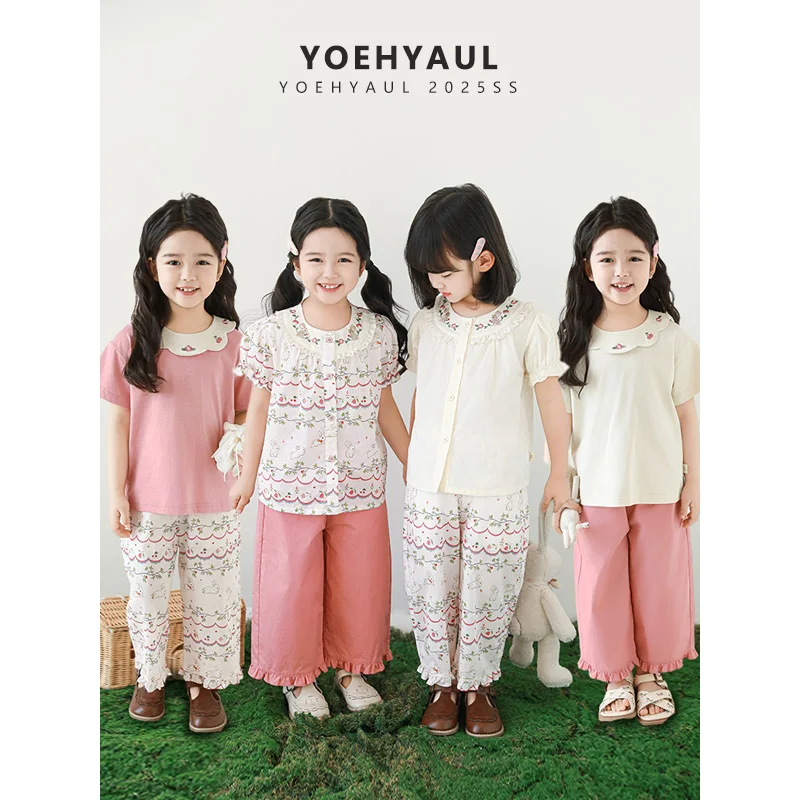 YOEHYAUL X5127 Floral Toddler Sets Two Piece Clothing T Shirt and Pants Little Girls Clothing Sets Girl Summer Outfits Set