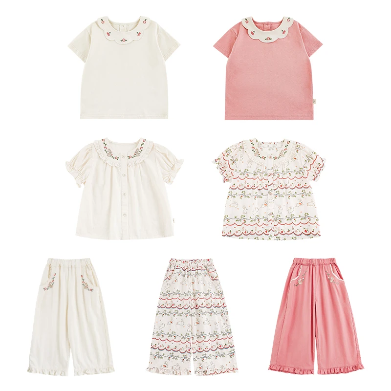 Girls Summer Apparel Set Customizable Cute Top and Skirt 3D Embroidery Fashion Outfit for Kids OEM