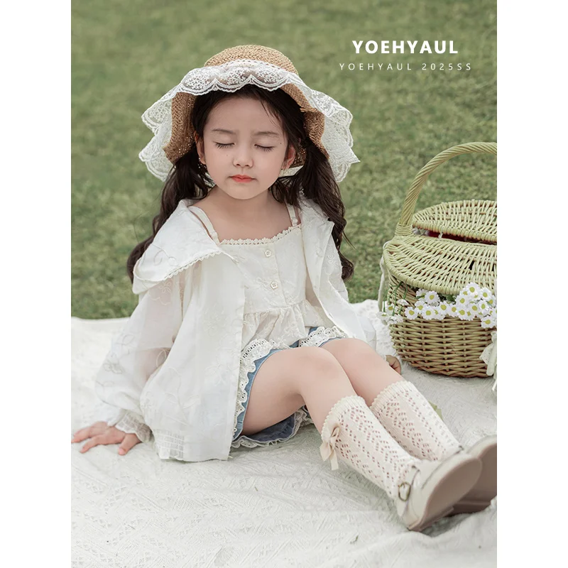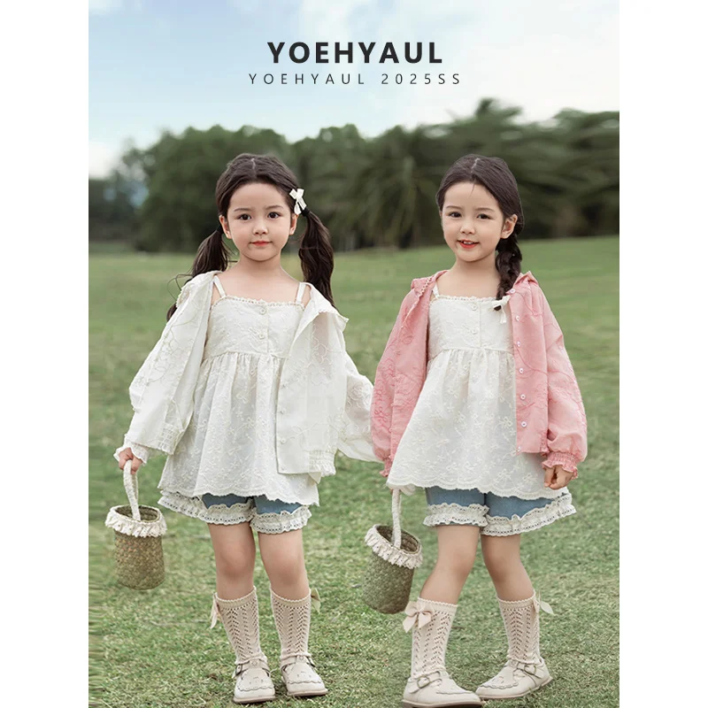 YOEHYAUL X4632 Summer Embroidery Anti-UV Kids Girl Sun-protection Jacket Breathable Child Hooded Sun Protective Clothing Jacket