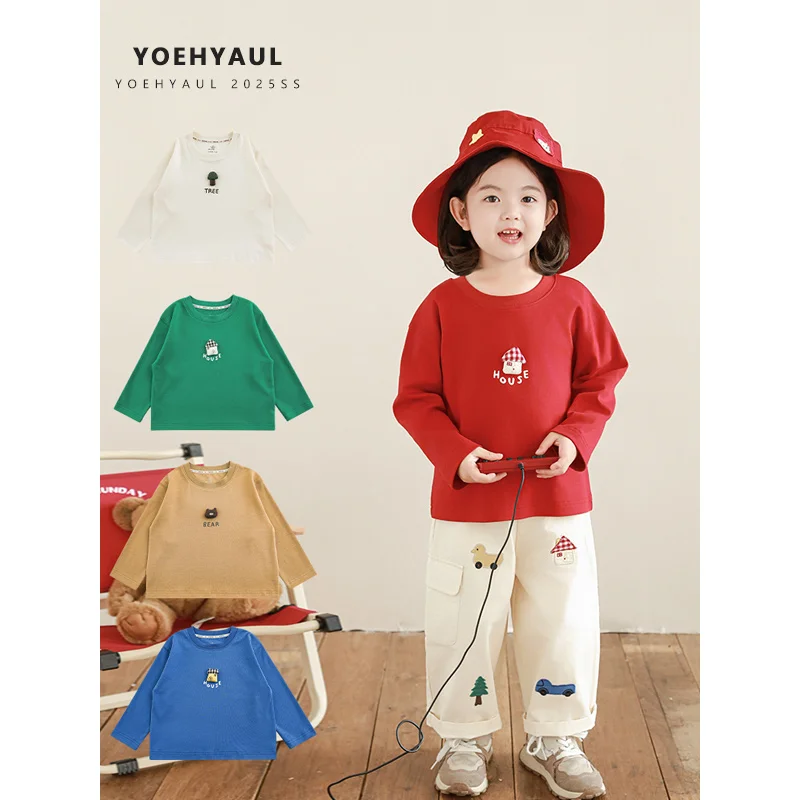 YOEHYAUL N5691 Unisex Custom Logo Casual Girls Long Sleeve Shirt O-Neck Baby Toddler Girls Shirts