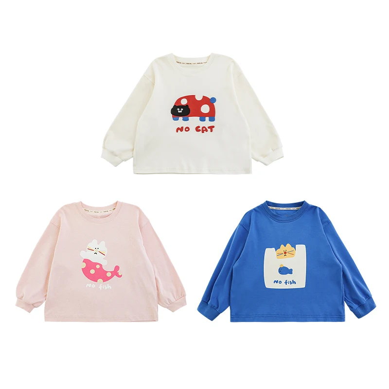 Children's Long Sleeve Top Apparel Customizable 230g Cotton Basic Shirt Layering Tee Plain Colors OEM