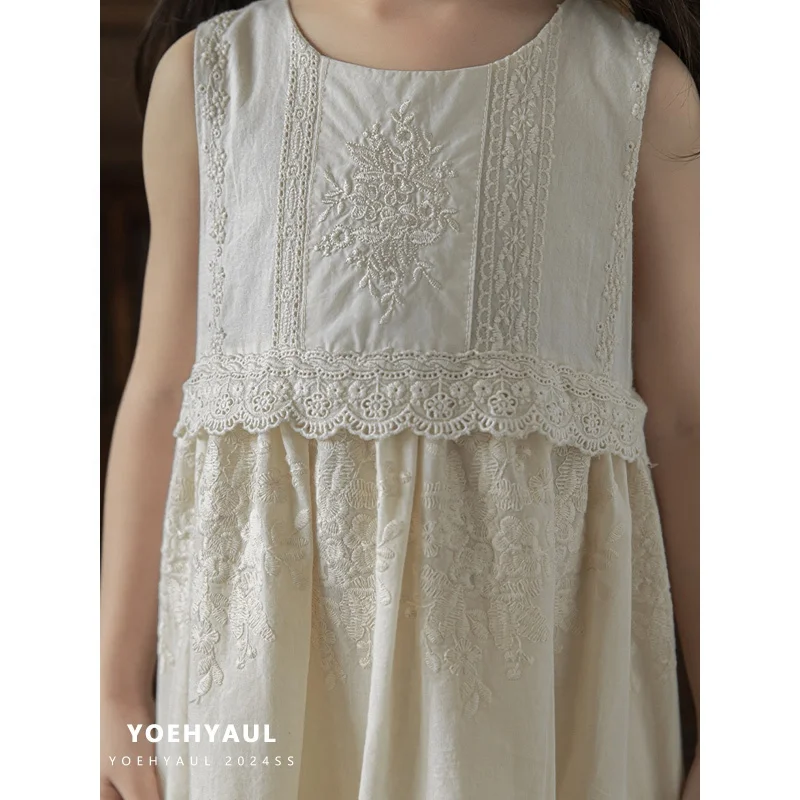 YOEHYAUL CX0014 Factory Summer Sleeveless Embroidery Kids Dress Wholesale Custom Toddler 1 Year Old Girls Cotton Summer Dress