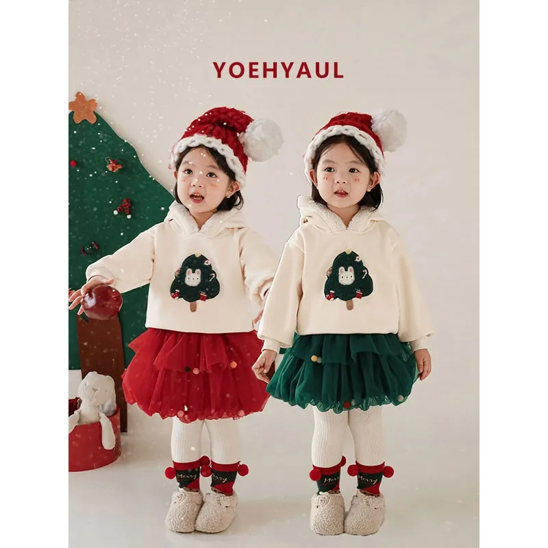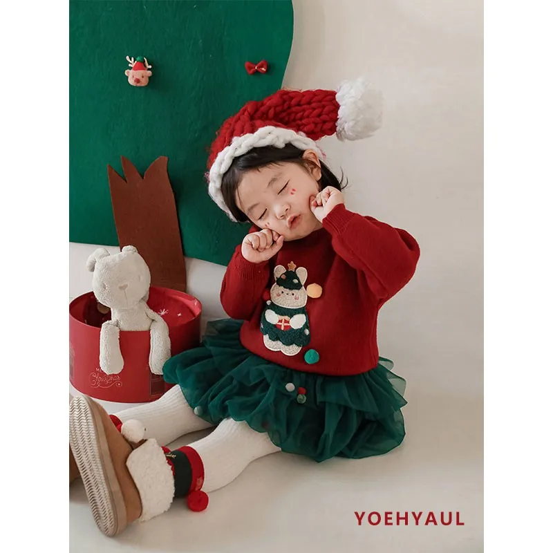 YOEHYAUL Christmas Girls Double-Layered Tulle Skirt Three-Dimensional Fur Ball Protruding Skirt Children's Protruding Skirt