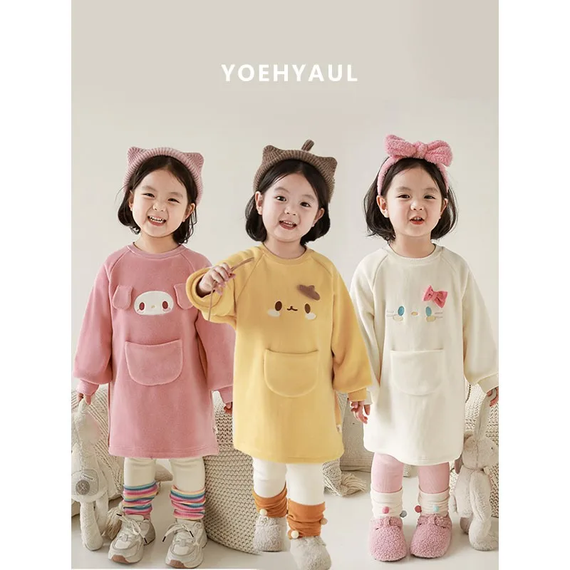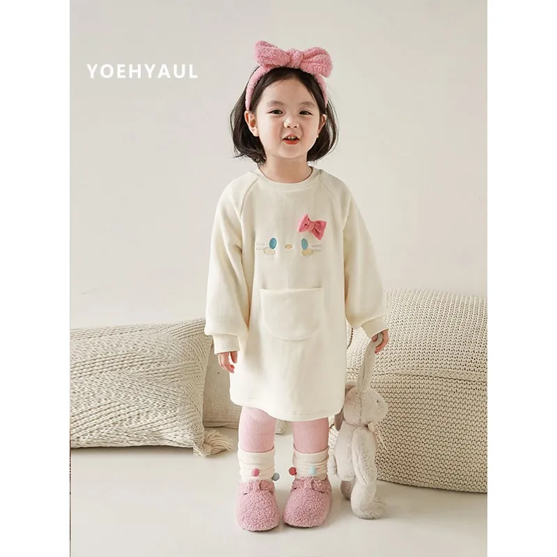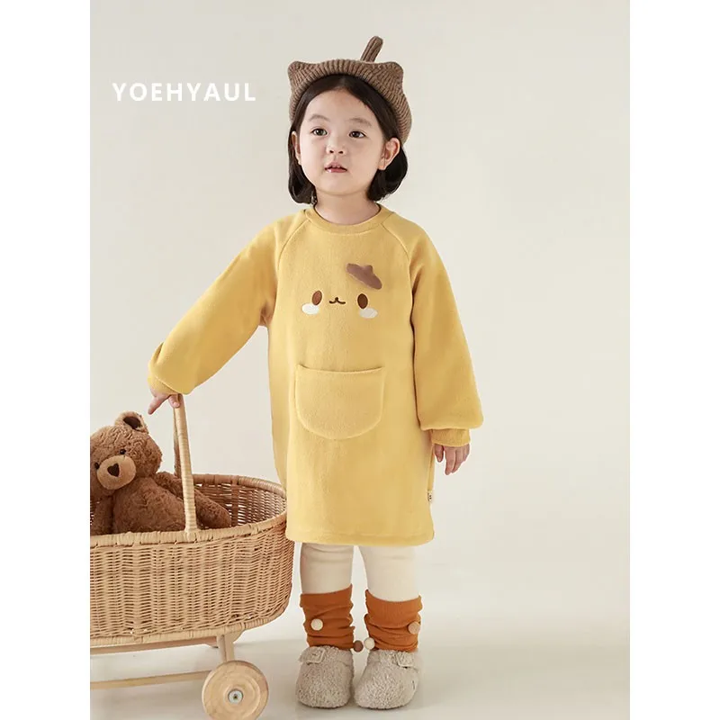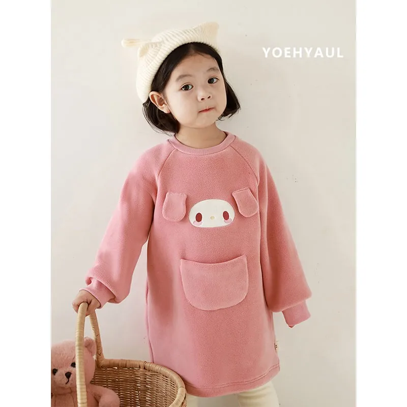 YOEHYAUL Girls Cartoon Embroidered Double-Sided Velvet Sweatshirt Winter Cute Three-Dimensional Ears Windproof Warm Top