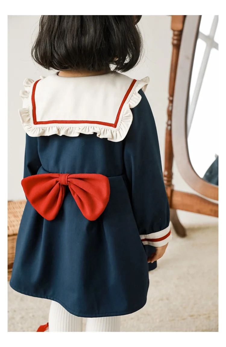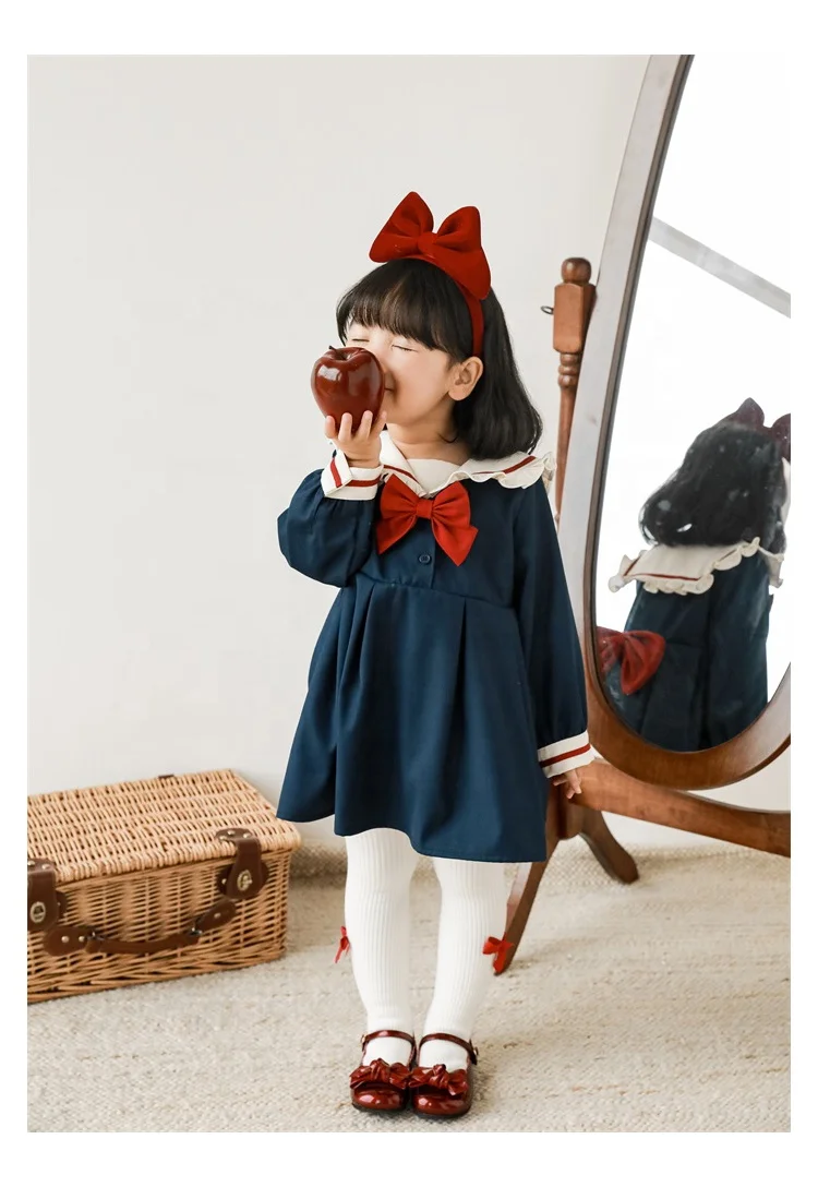 Q2525/High Quality Kids Girls Spring Autumn Clothing Girls Beautiful Smocked Dress with Perter Pan Collar