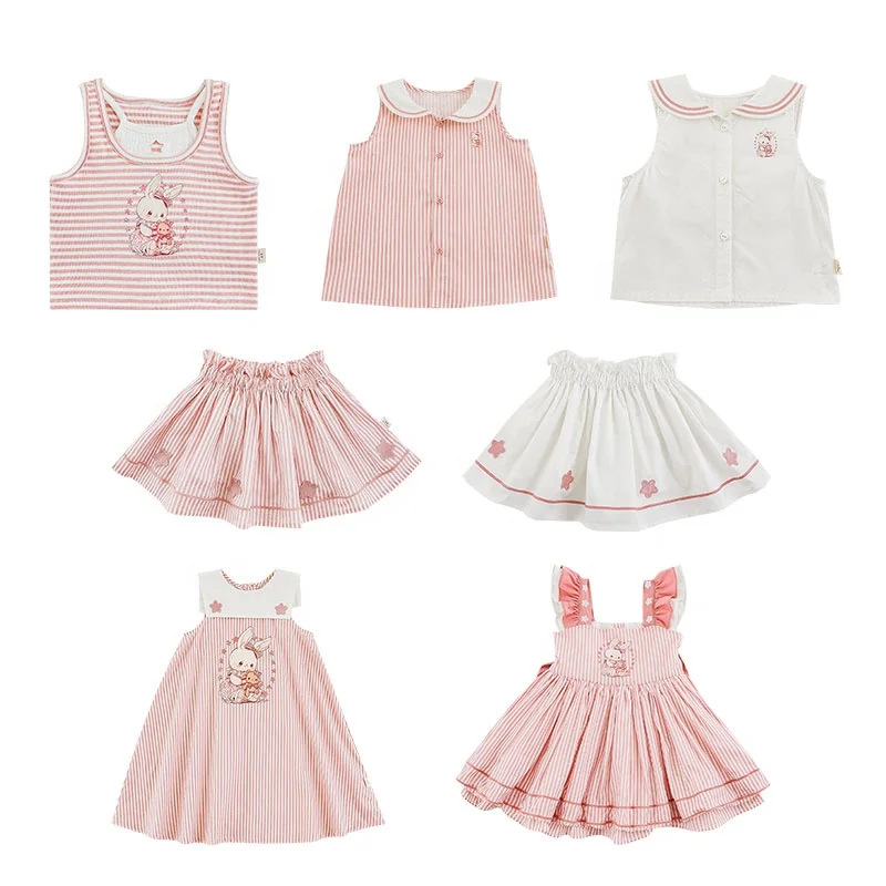 Girls Summer Apparel Set Customizable Cute Top and Skirt 3D Embroidery Fashion Outfit for Kids OEM