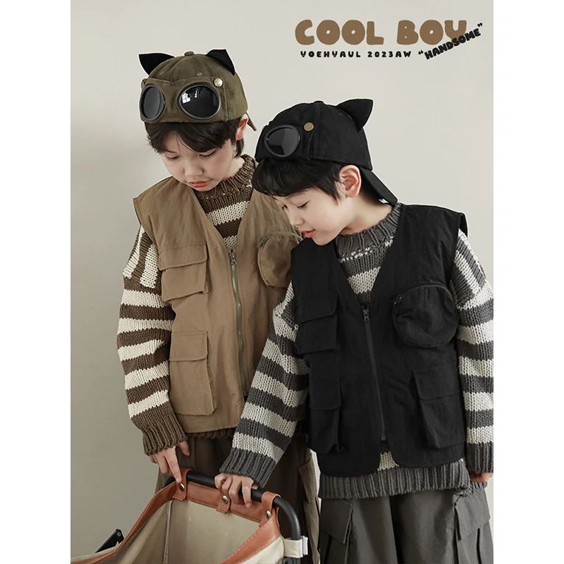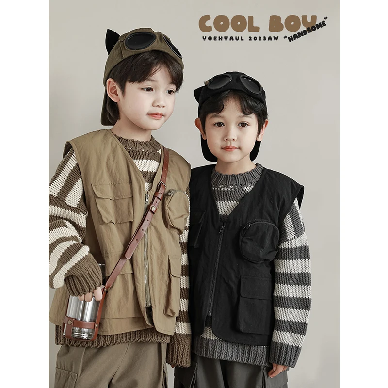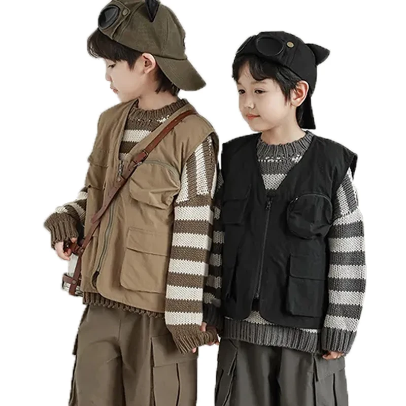 Spring Autumn 3D Pocket Cool Boys Tank Tops Vests&Waistcoats Jacket Diamond Quilted Casual Children Kids Vest for Boys
