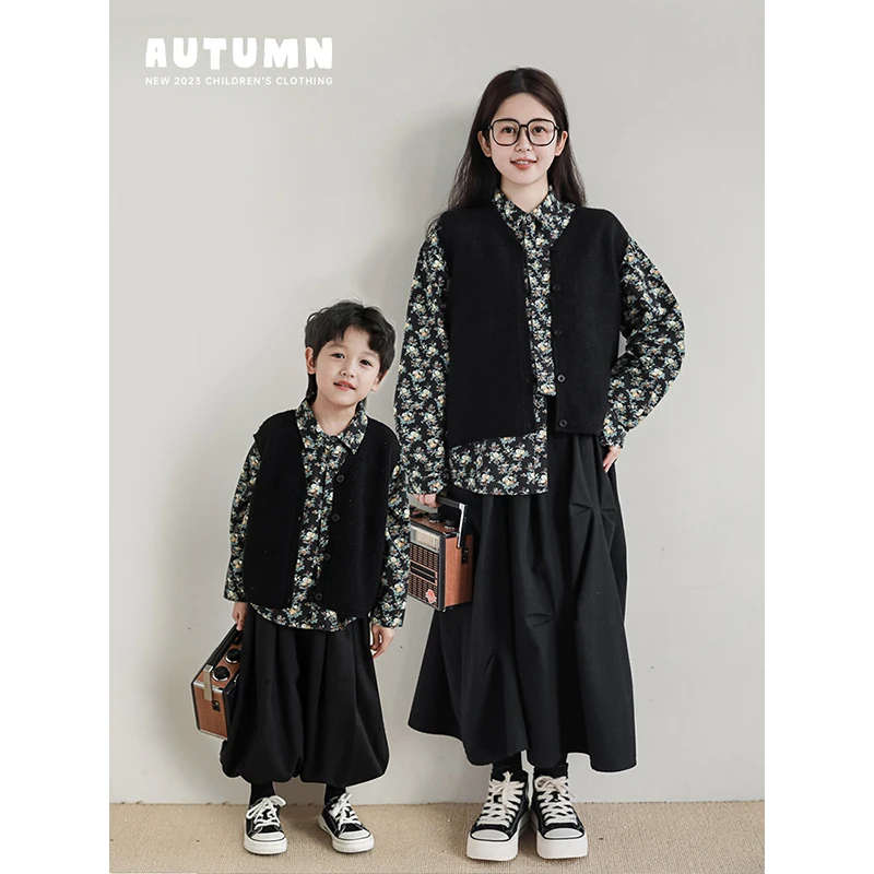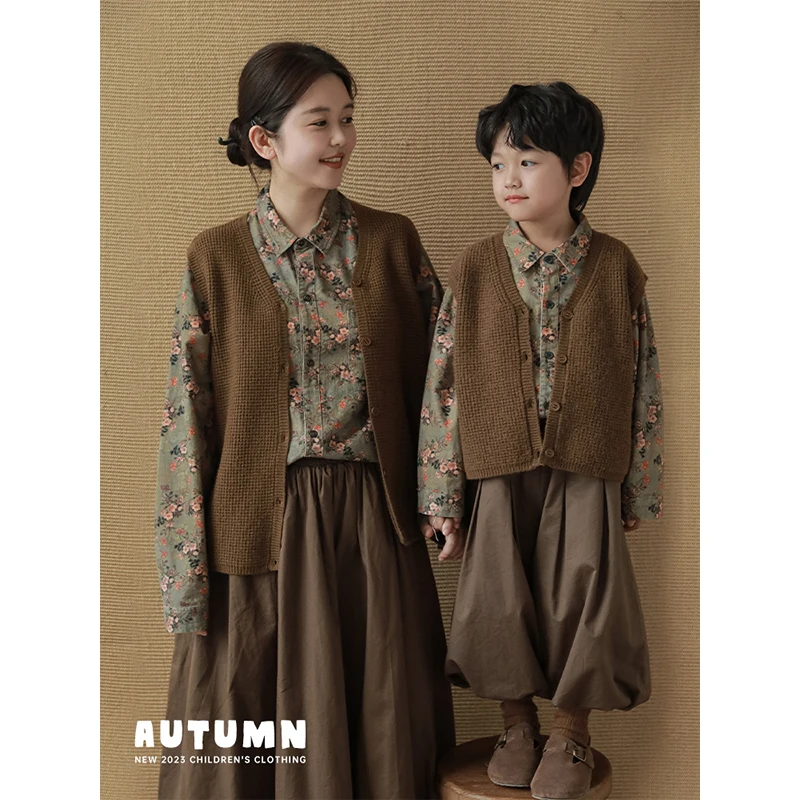 Boys Japan Style Waffle Loose Sleeveless Sweater Vest Autumn New Children's Knitted Cardigan Parent-Child Wear