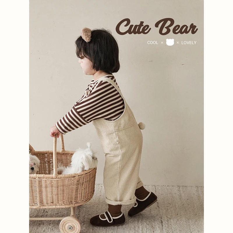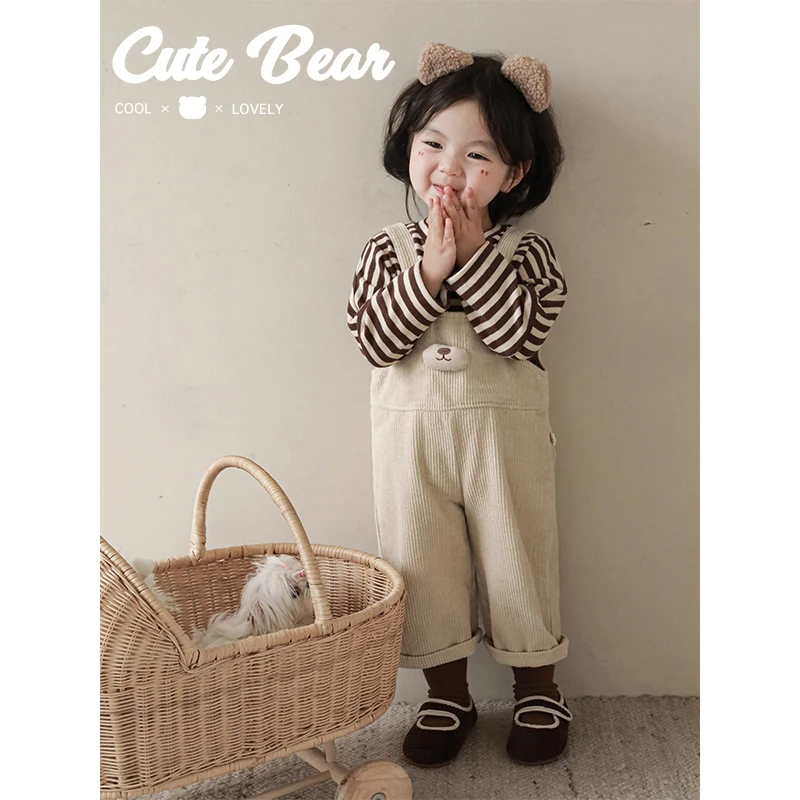 Custom Girls' Cute Little Lucky Bear Overalls 2023 Autumn New Arrival Children's Hand-sewn Furball Cute Pants