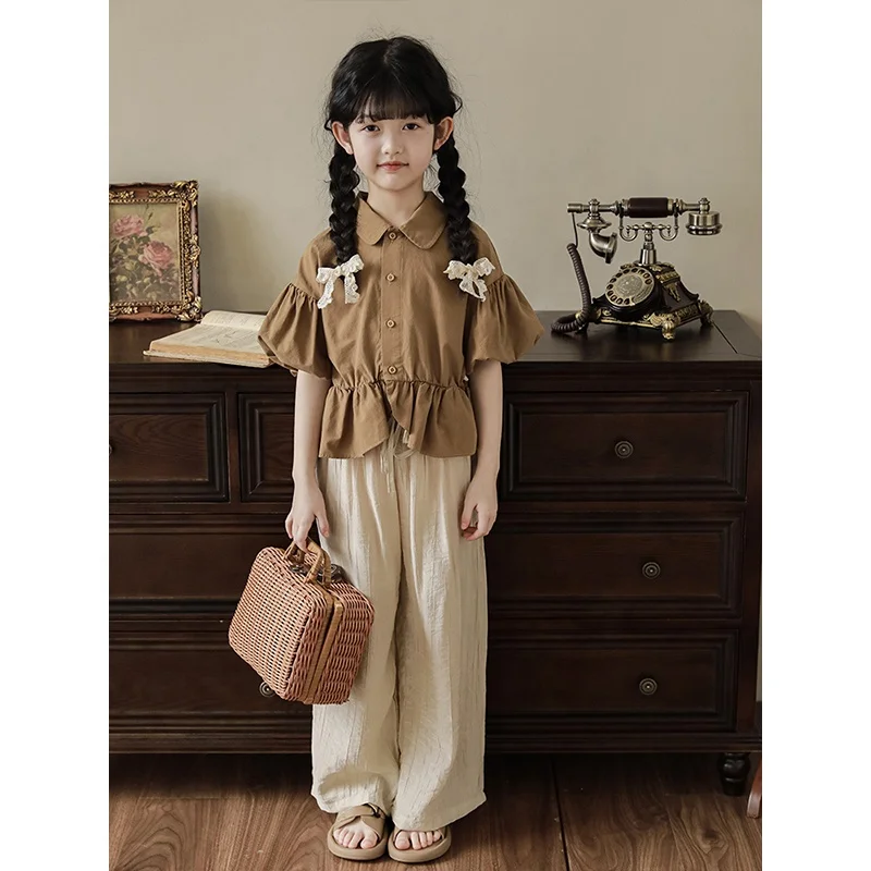 Girls Summer Apparel Set Customizable Cute Top and Skirt 3D Embroidery Fashion Outfit for Kids OEM