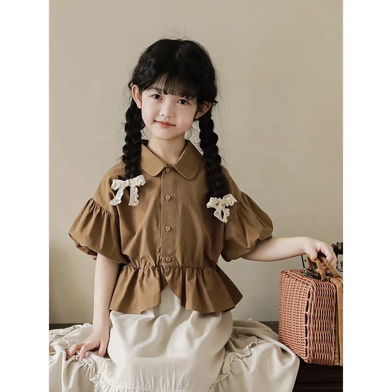 Boutique Hot Selling Solid Color T-shirt Summer Baby Girls Short Sleeves High Quality Wholesale Pure Cotton Kids Girls Clothing