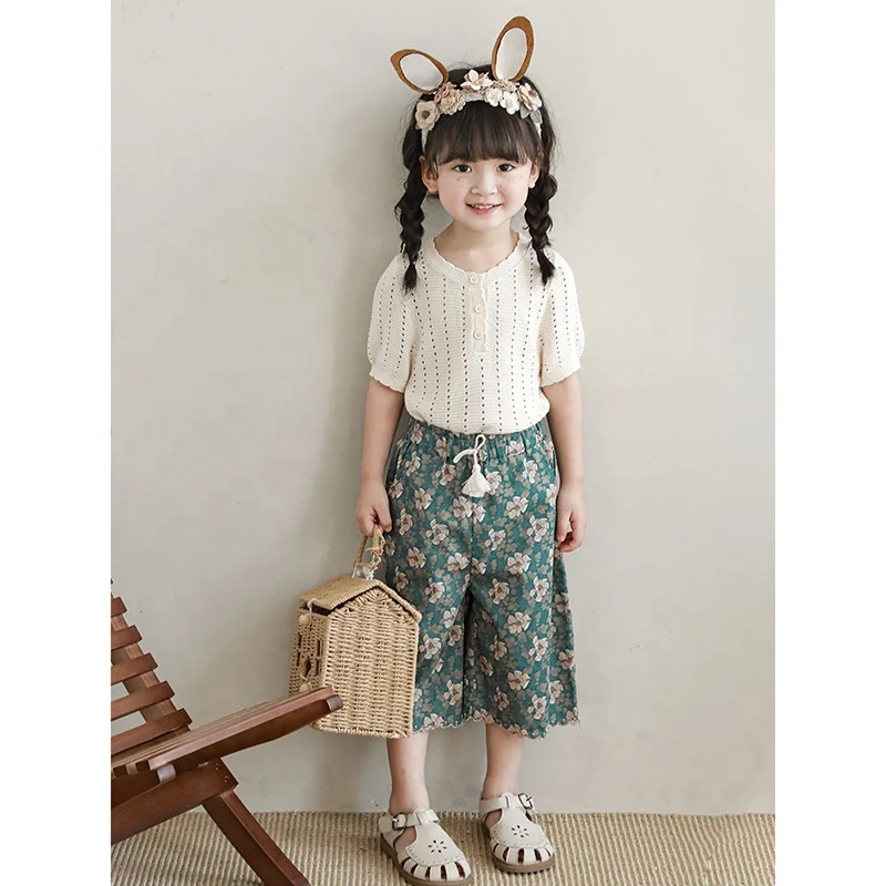 Girls Summer Apparel Set Customizable Cute Top and Skirt 3D Embroidery Fashion Outfit for Kids OEM