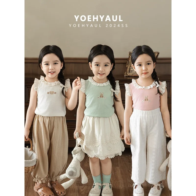 CX0020 YOEHYAUL Fashion Custom Design Cartoon Embroidery Kids Girls T Shirt Children Tshirts and Tops Toddler Oversized T-shirts