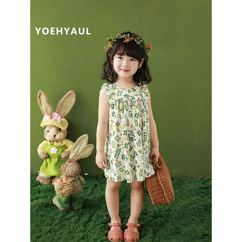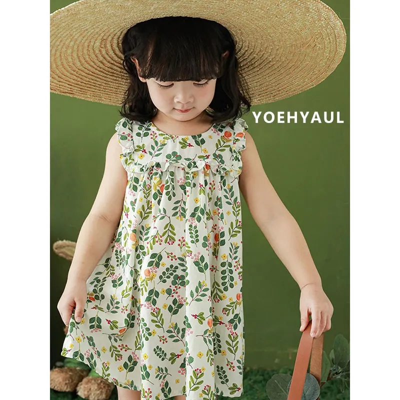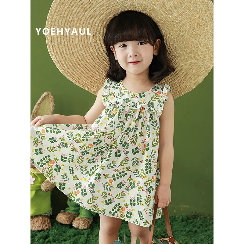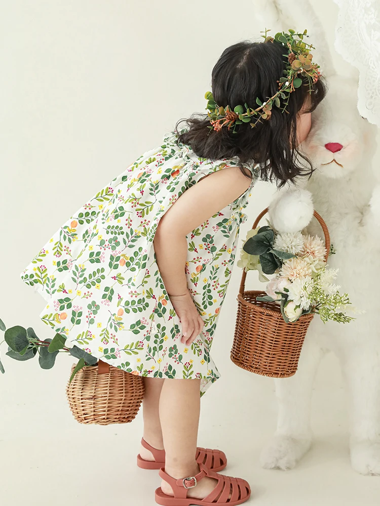 1-8T High Quality 100% Cotton Patchwork Sweet Summer 1 Year Toddler Girls Baby Dress Leaves Print Baby Girls Dress Designs