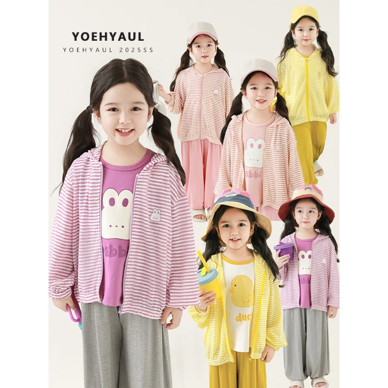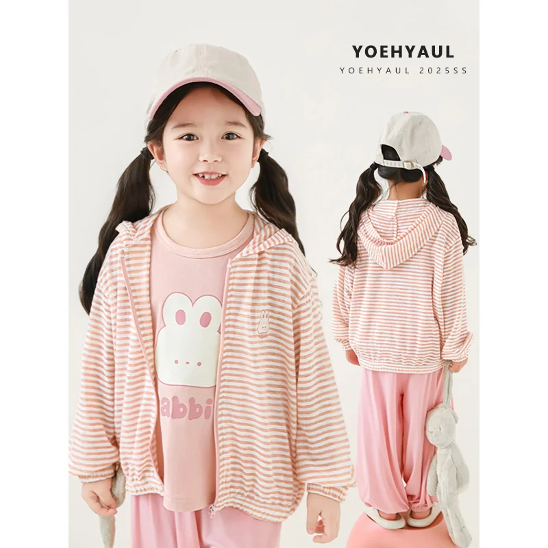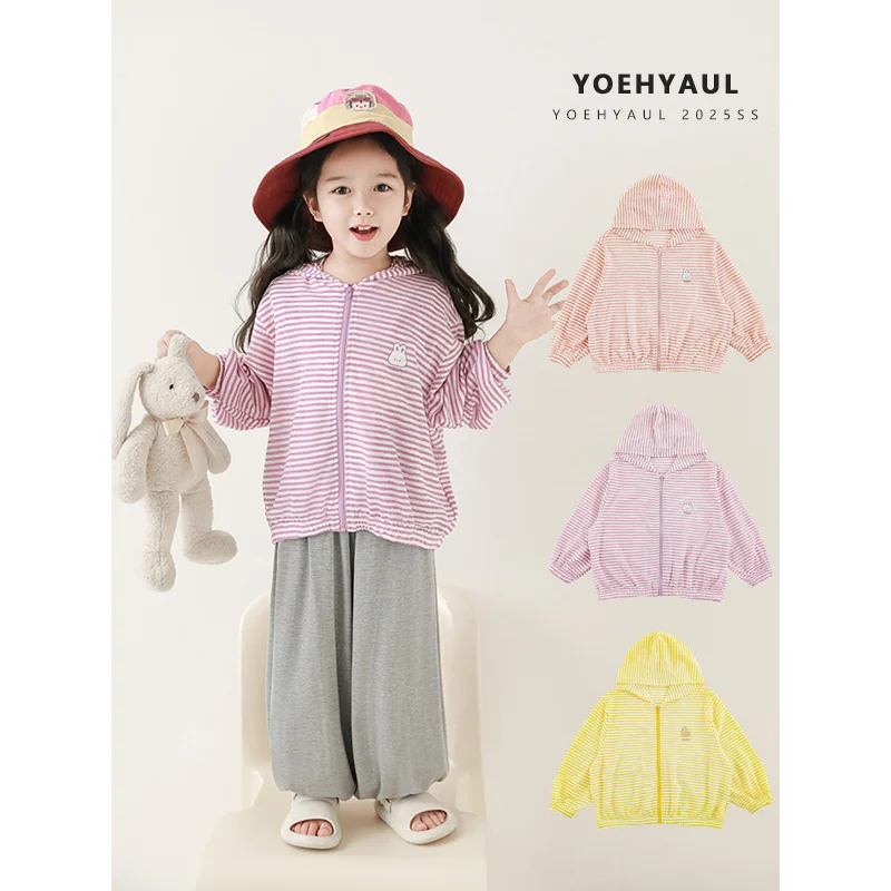 YOEHYAUL X4983 1-10T Kids Girls Sun-protection Jacket Coats Child Hooded Sun Protective Clothing Toddler Anti UV Jacket Outwears