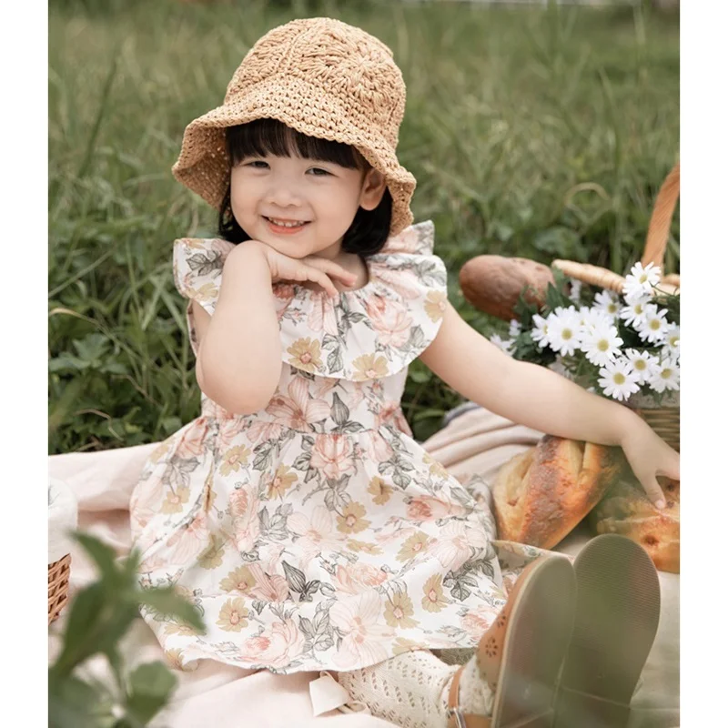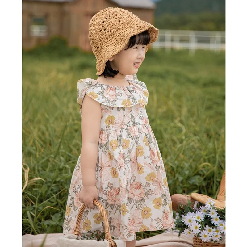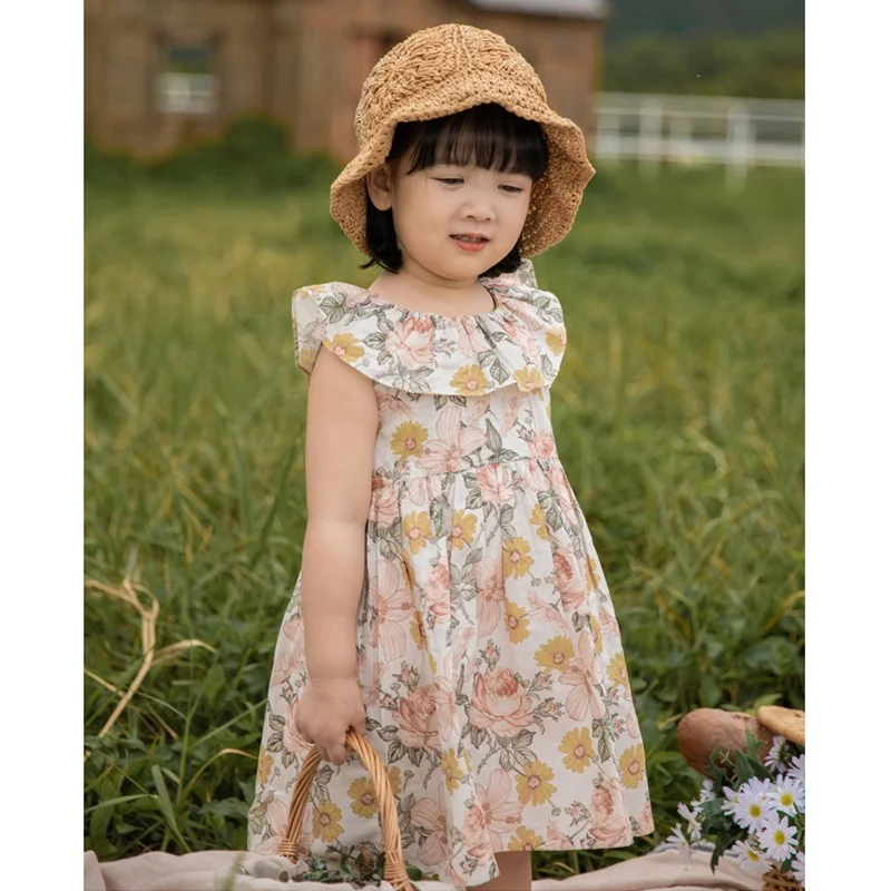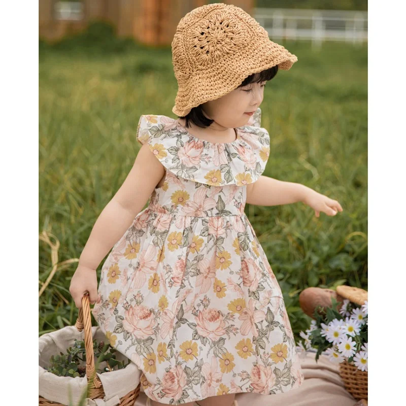 Hot Sale 2023 Summer Girls Floral Dress for Kids 100% Cotton Ruffles Boutique Little Girls Dresses