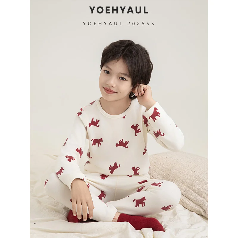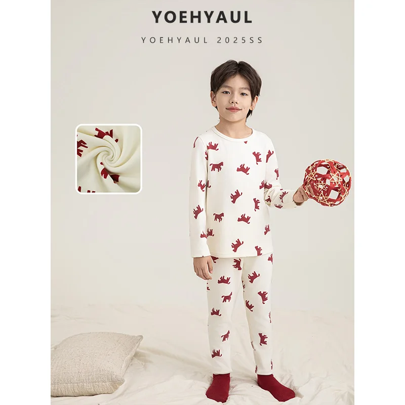 YOEHYAUL QG3330 Cartoon Printed Long Sleeve Boys Teen Winter Pajamas Set Teenager Thick Warm Kids Home Wear Pajamas