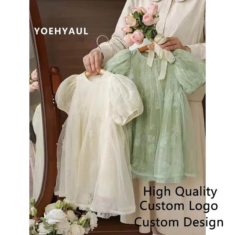 YOEHYAUL X4063 CE CPC Custom Cotton Lining Puff Sleeves Children Lace Dress Kids Tulle Princess Baby Dress Girls Pageant Dresses
