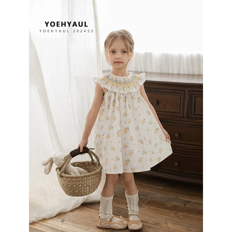 YOEHYAUL ZX0012 100% Cotton Sleeveless Floral Girls Dresses Wholesale Custom Elegant Toddler Smoked Baby Dress Children