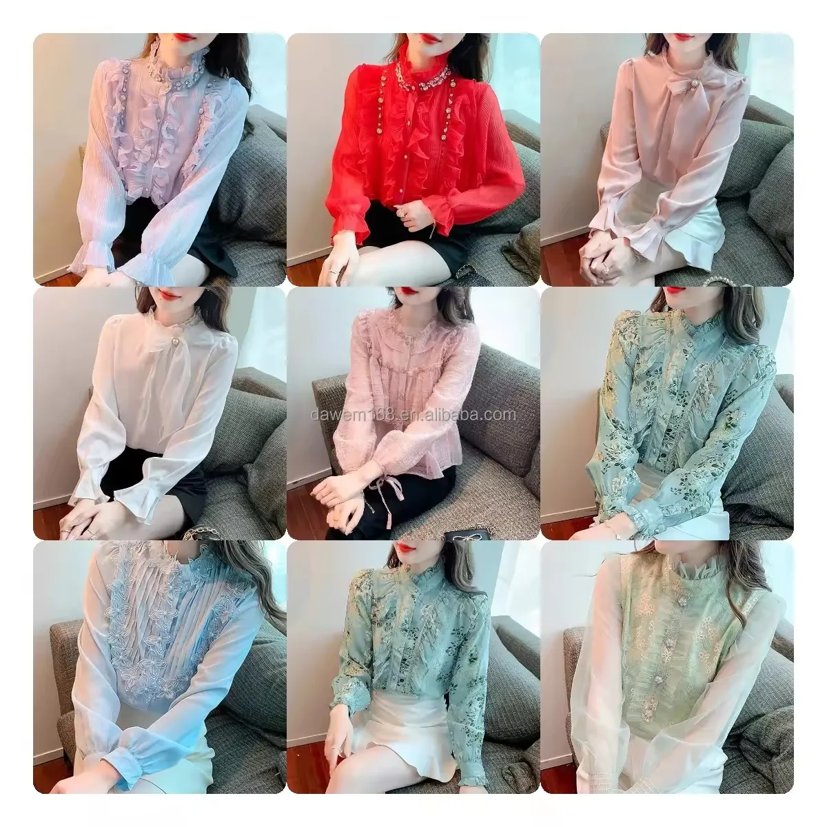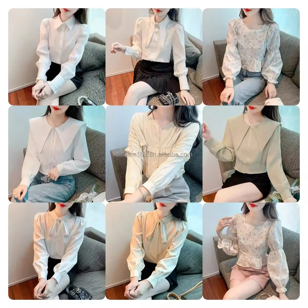 2026 Women's High-Grade Elastic Slim Casual Shirt Woven Button New Tail Puff Sleeve Solid Pattern Simple Fashion Wholesale