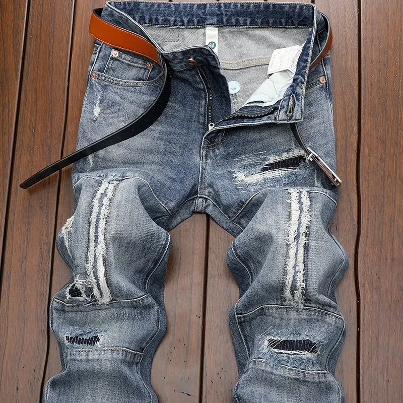 European High Street Vibe Men's Long Pants American Street Washripped Jeans Hip Hop Style Boyfriend Jeans for Summer & Winter
