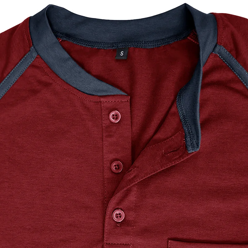 Autumn Winter Men's Outdoor Henry T-shirt Long-Sleeved American-Style Raglan Base Top Solid Pocket O-Neck Knitted Cross-Border