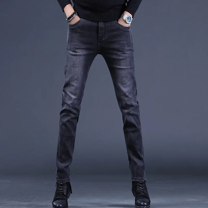 American Trend Brand Men's Summer Hip Hop Style Hand-Painted Graffiti Jeans with Luxe Straight Leg Long Pants