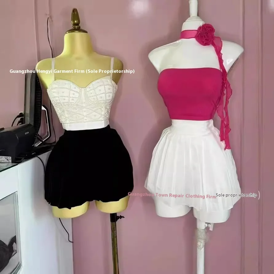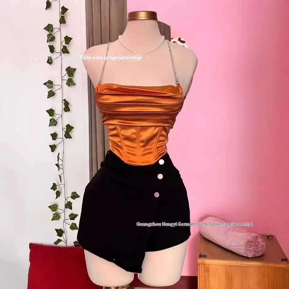 Spice Girls Summer Crop Top Sexy Slim Halter Vest with Rhinestone Sleeve Print Breathable Casual Short Length Clothing