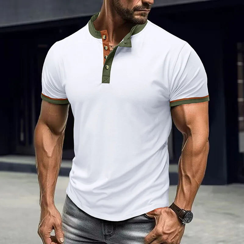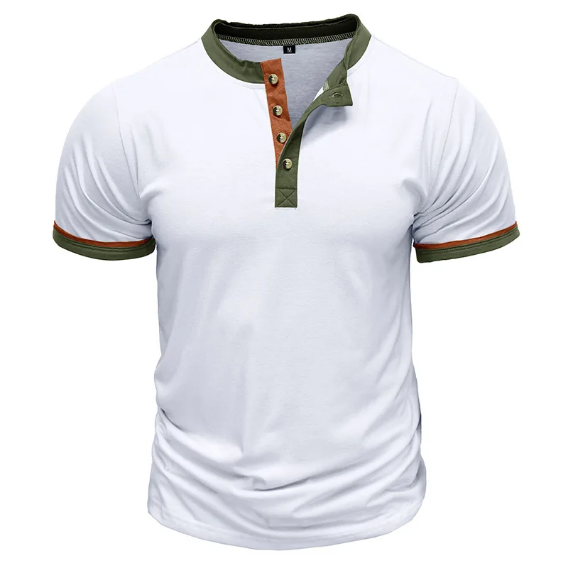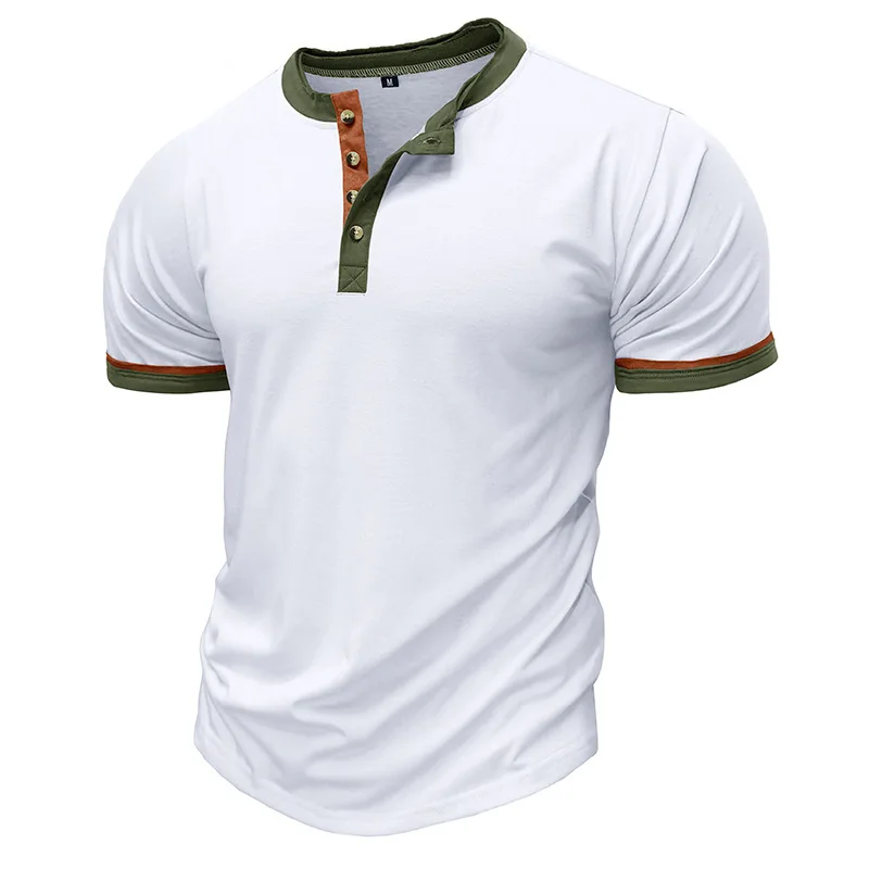 European American Outdoor Style Open Cartridge Design Men's Short-Sleeved Henry T-Shirt Cross-Border Sports Breathable Print