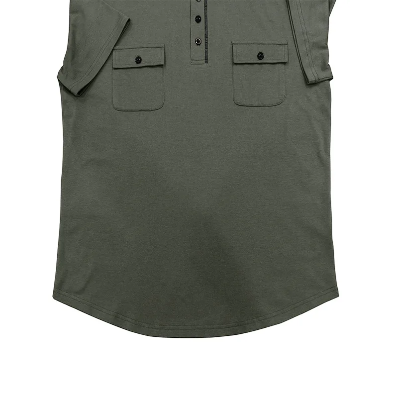 European American Summer Men's Outdoor Short-Sleeved Hooded T-Shirt Double Pocket Henley Top Cross-Border Casual Style Printed