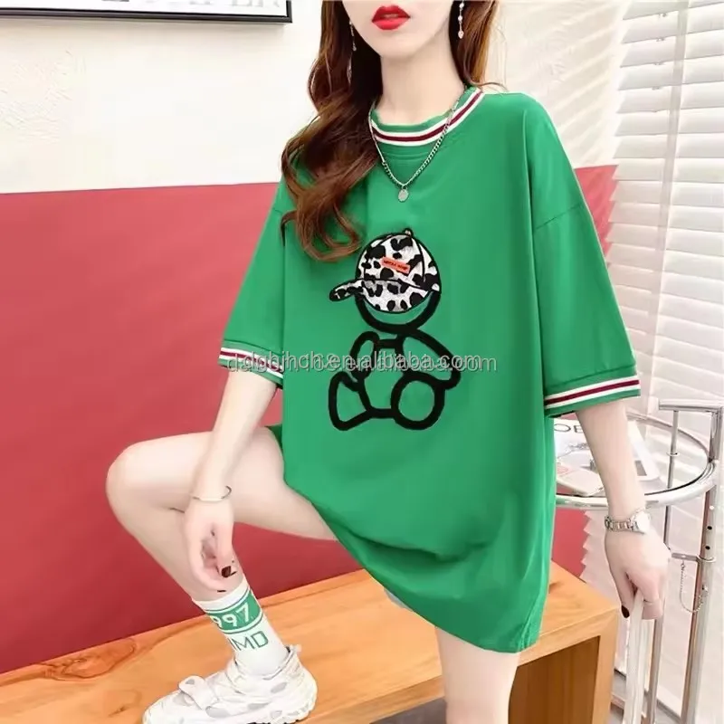 High Quality Cotton Women's T-Shirt Short Sleeve Casual Fashion with Custom Embroidered Sequin Logo Wholesale for Teenagers
