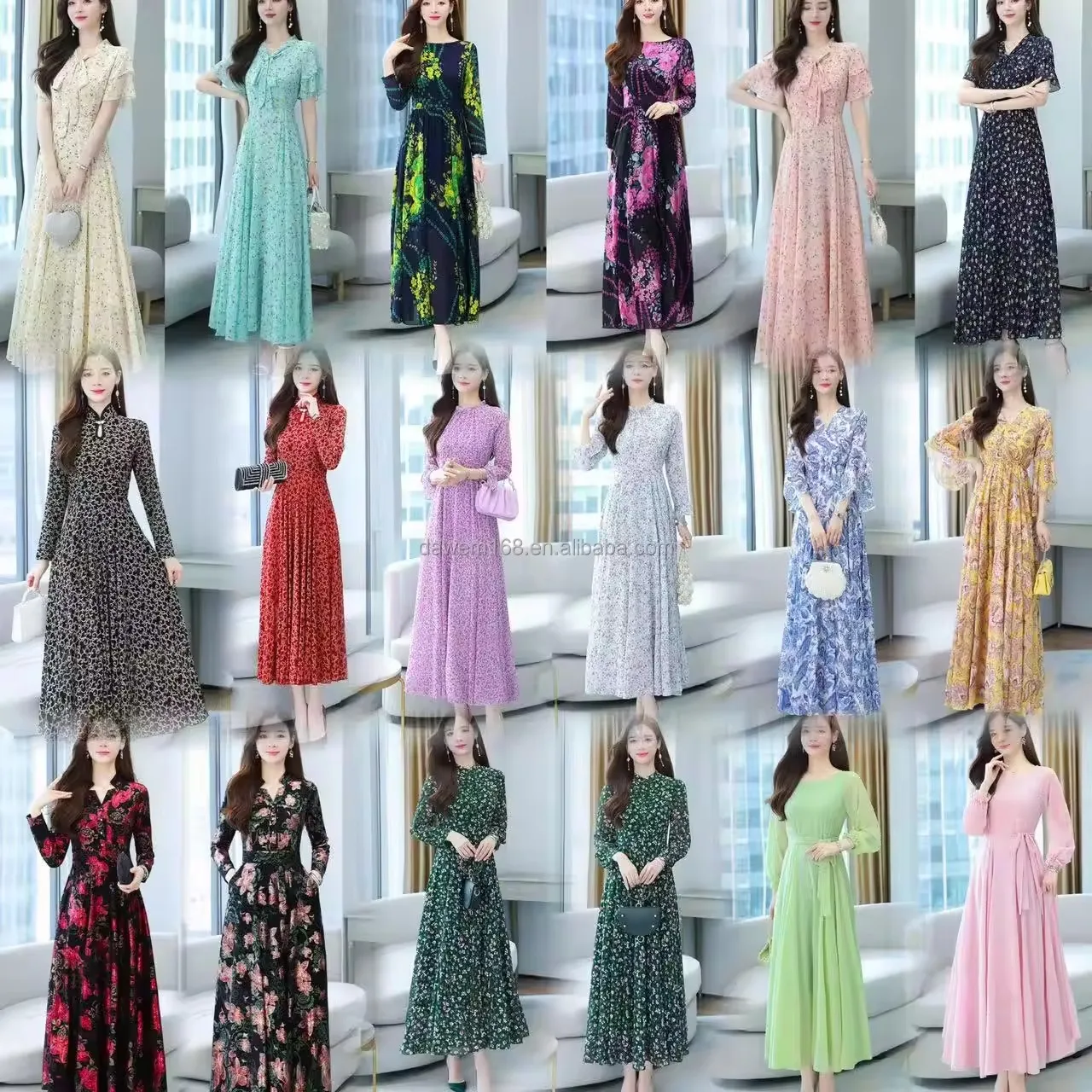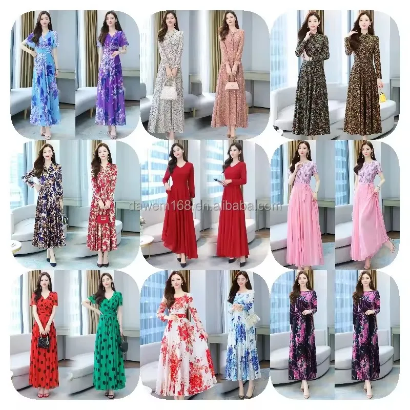 Wholesale Y2K Style Women's Dresses High Quality Chiffon Fabric Solid V Neck Lantern Sleeves Boho Touch Medium Large Sizes