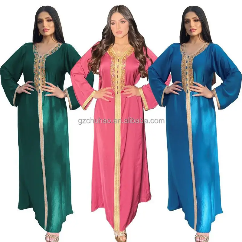 Latest Luxury Dubai-Style Modest Abaya Dress Collection Breathable Embroidered Kaftan Robe Jelabia