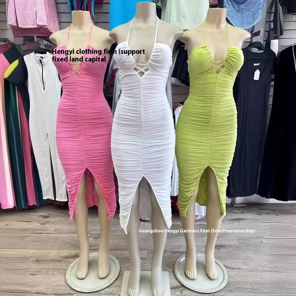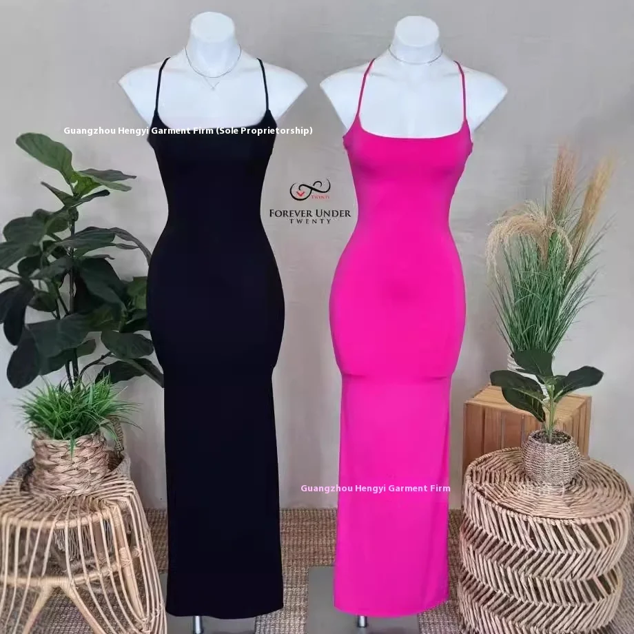 Europe and the United States New Women Elegant Casual Length O Collar Summer Dress Sexy Slip Dress