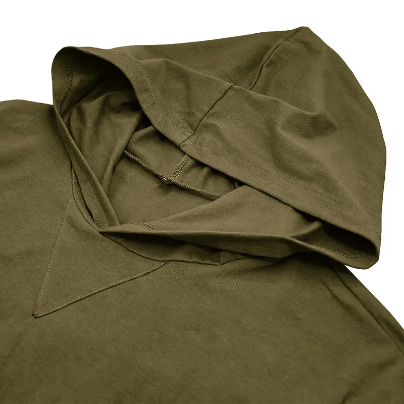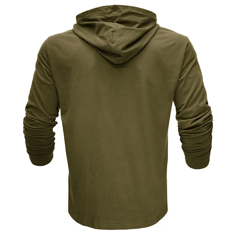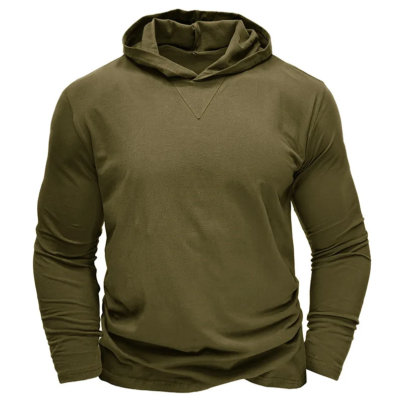 European American Style Men's Long-Sleeved T-Shirt for Autumn Winter Solid Color Pure Cotton Hooded Backing Shirt Outdoor Print