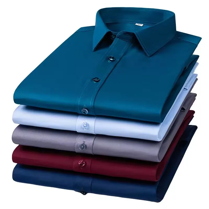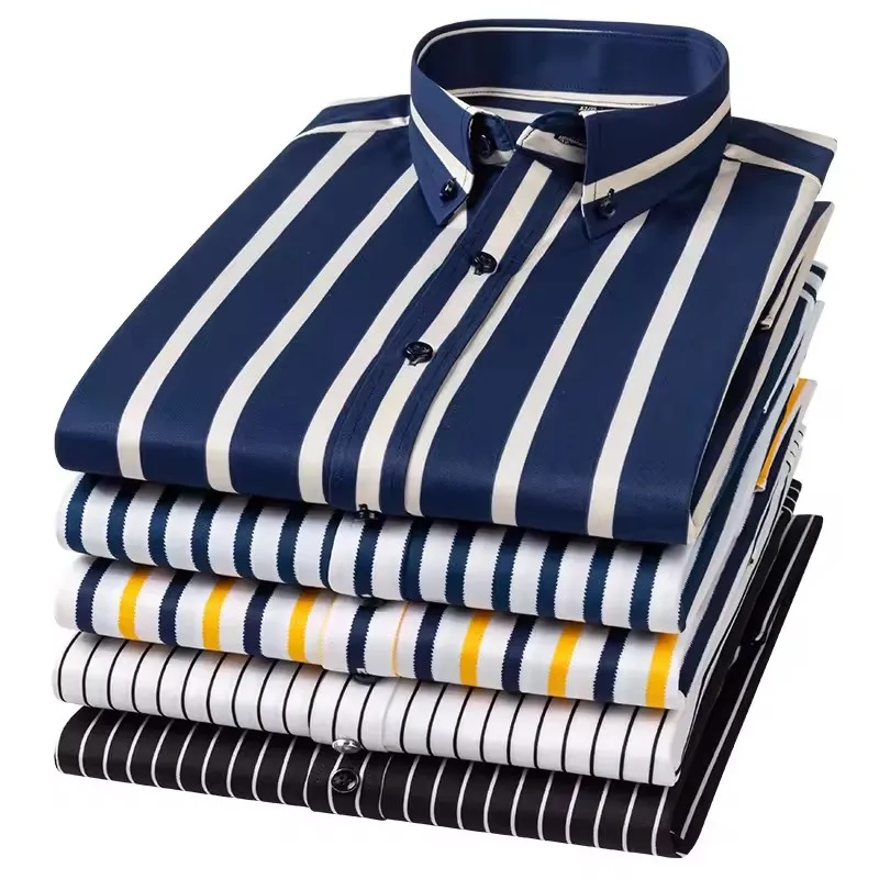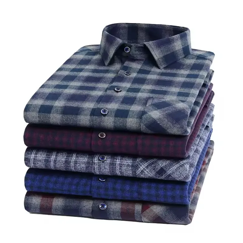 Men's Free Iron Stretch Plaid Long Sleeve Shirt Loose Casual Business Formal for Winter Yarn Dyed Spring Direct Factory Sales