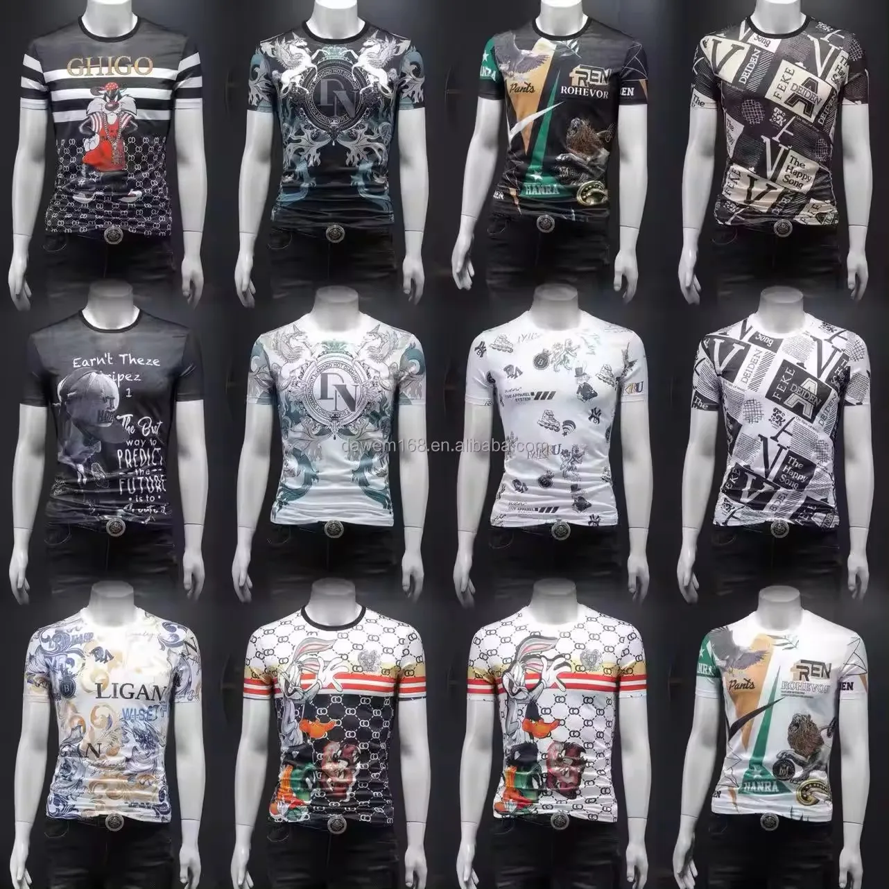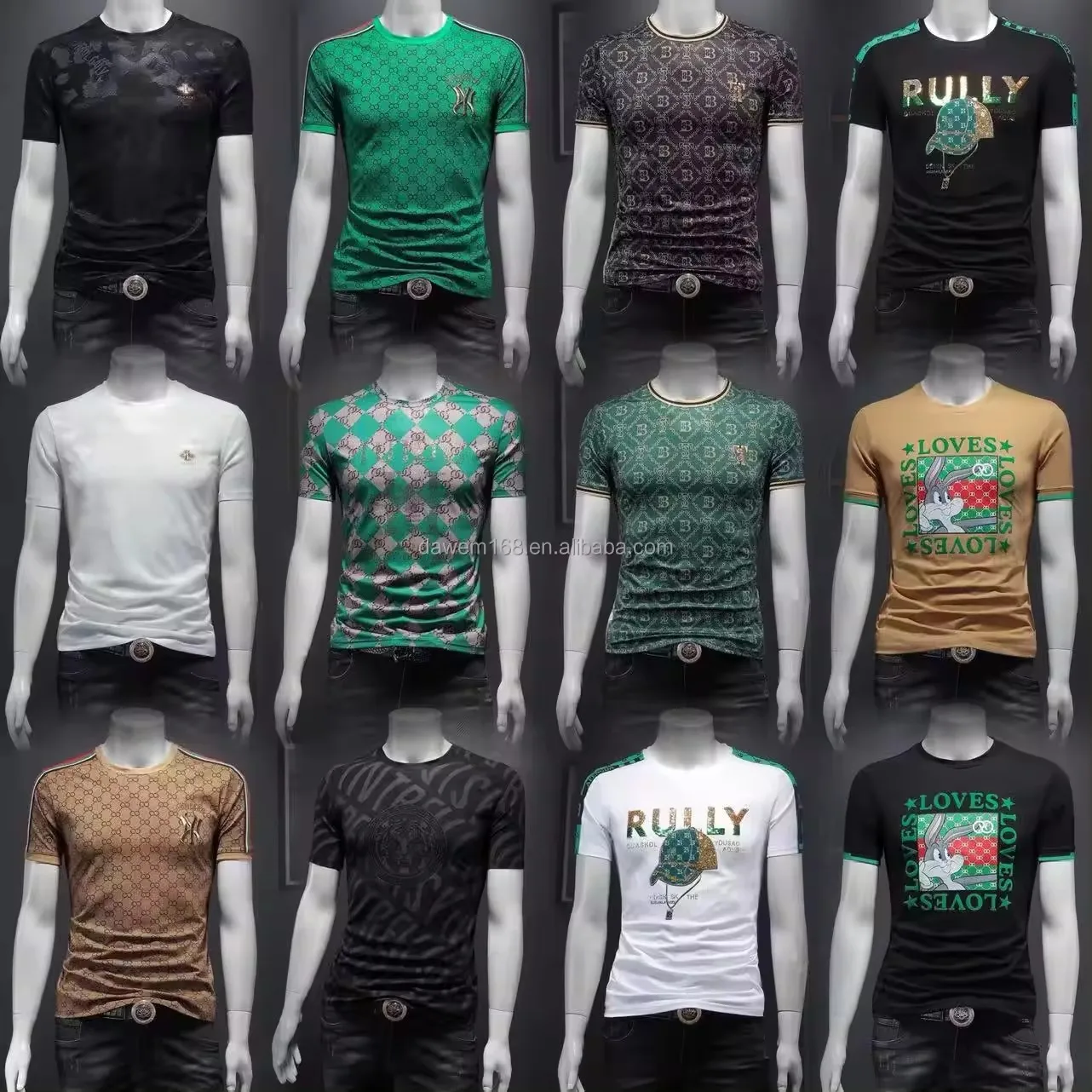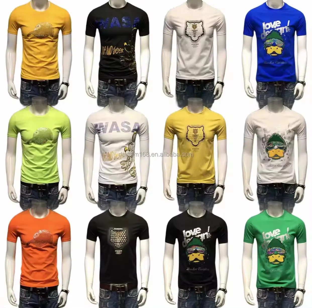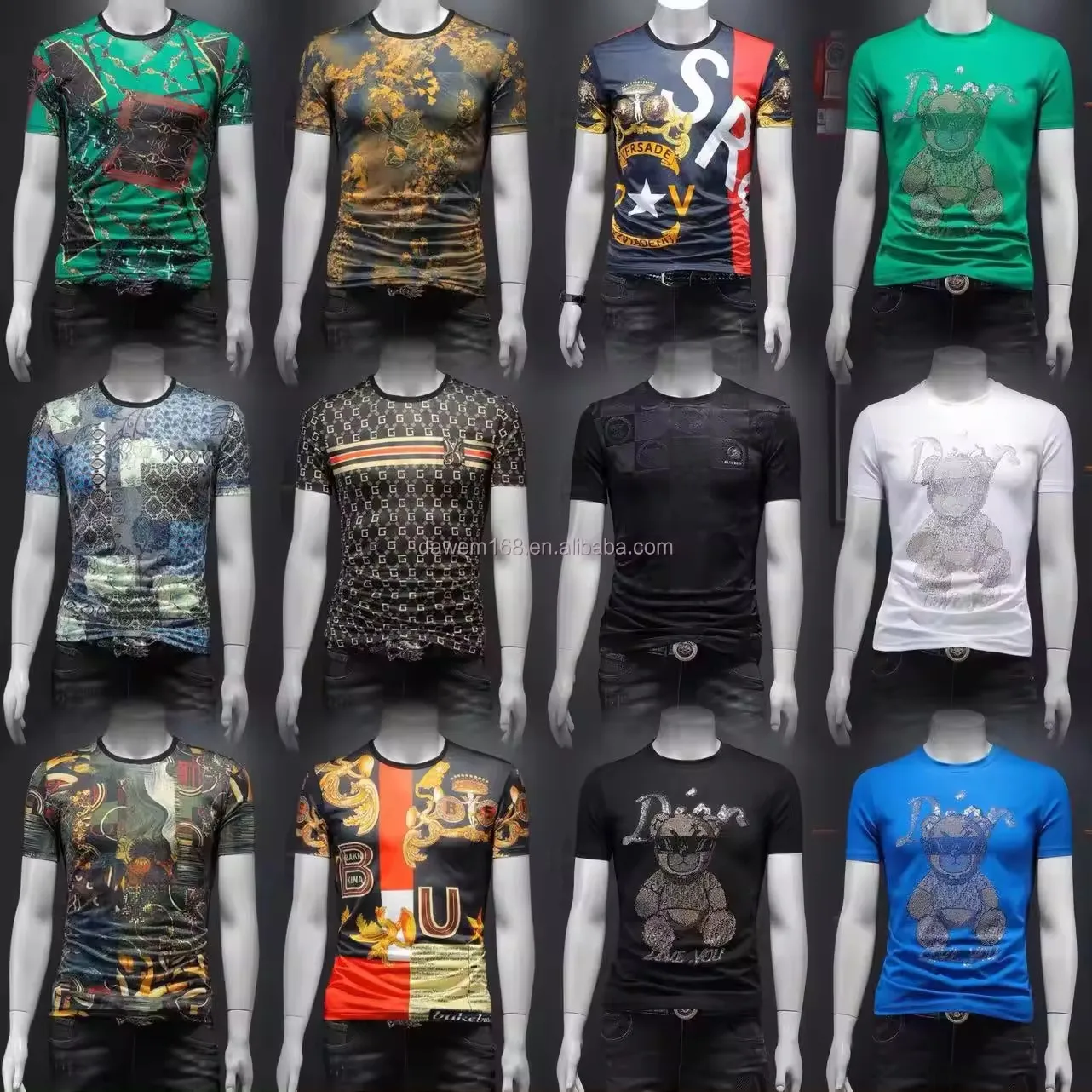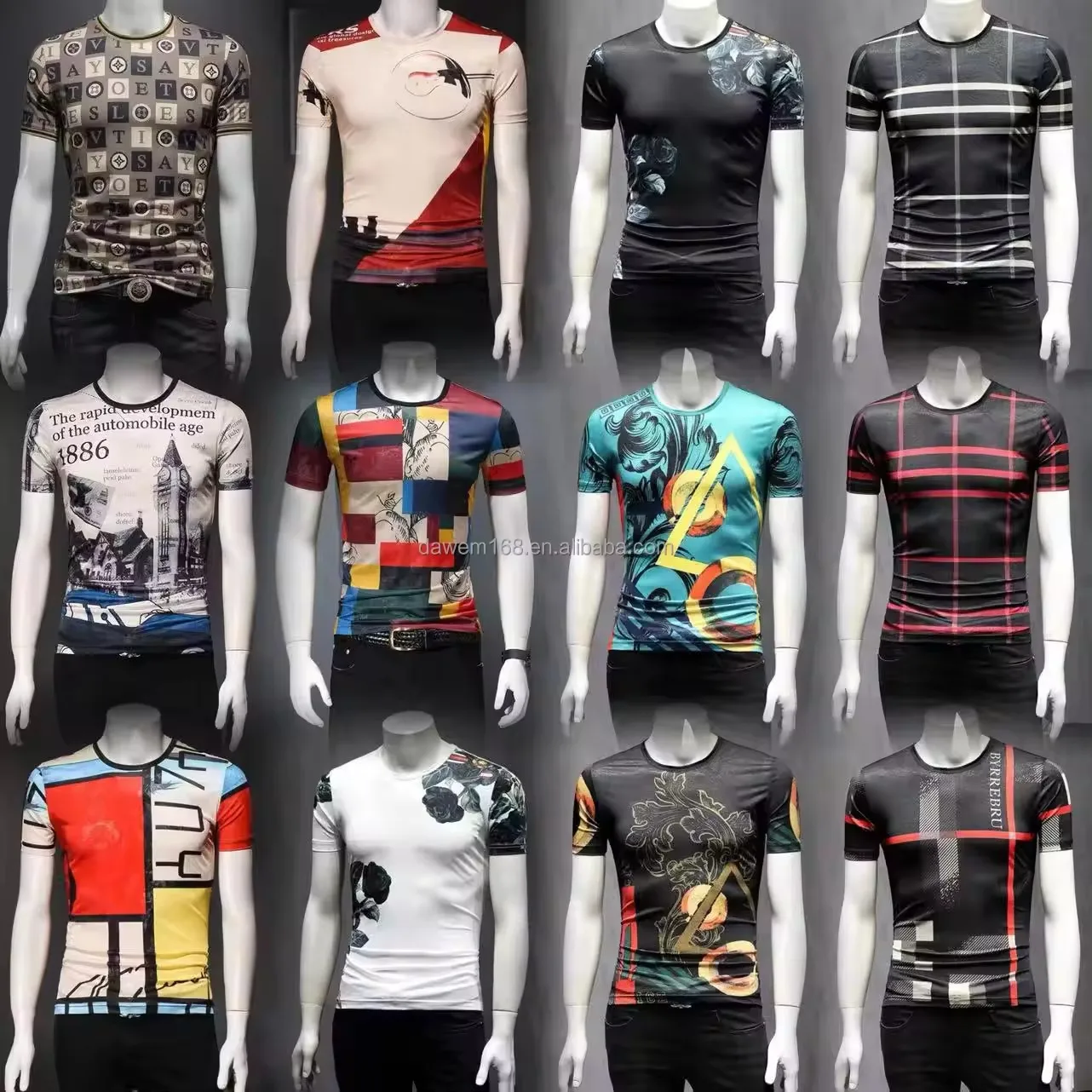 2026 Men's Fashion Embossed T-shirt Velour 100% Cotton Solid Color Short Length American Size Printed Pattern Plus Size Option