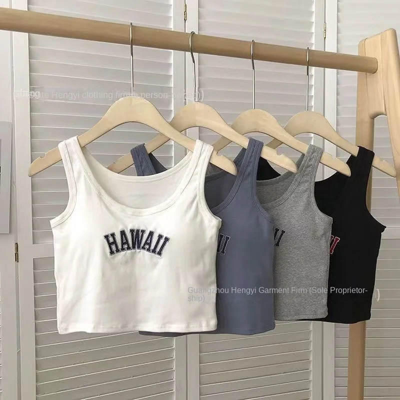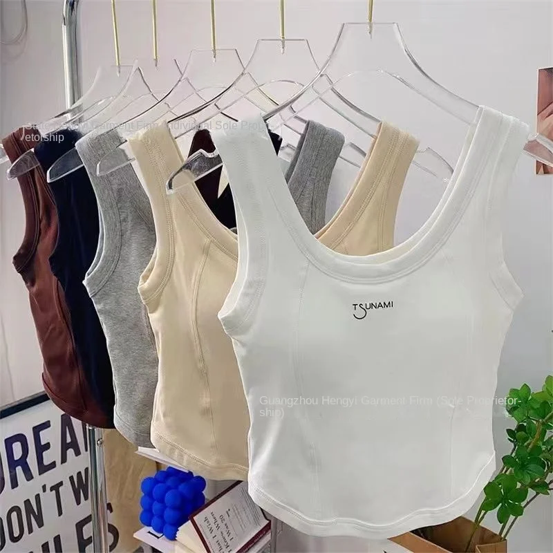 Women's Sexy Stretch Summer Tank Tops Breathable Knitted Fabric Casual Style Short Length with Front Logo Wholesale Stock