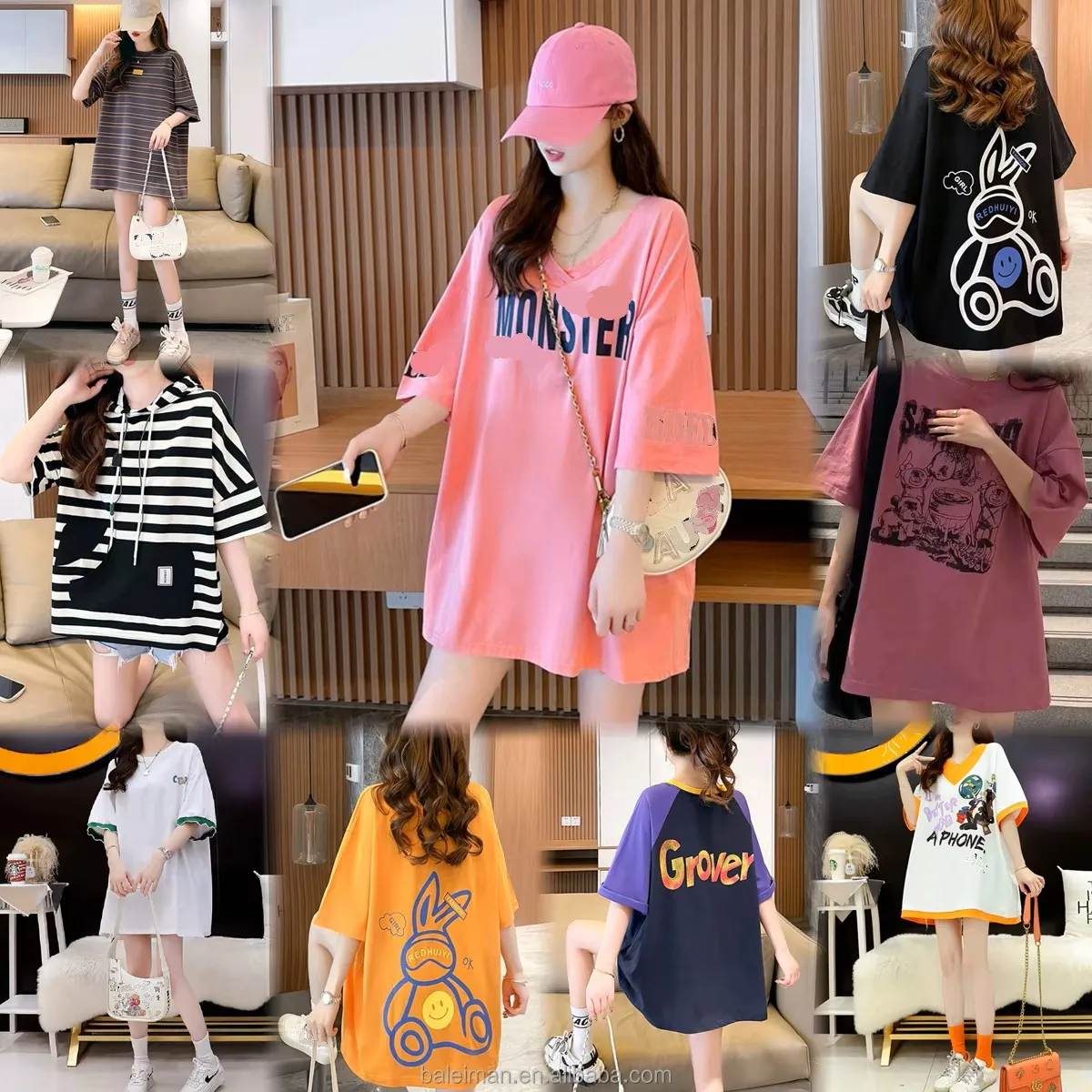 Women's Casual Short-Sleeved T-Shirt with Feathers Decoration Loose Fit Fashion for Teenagers
