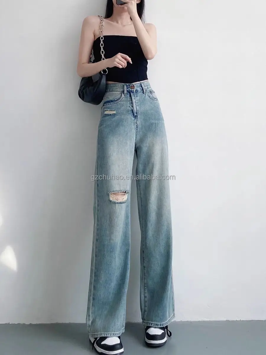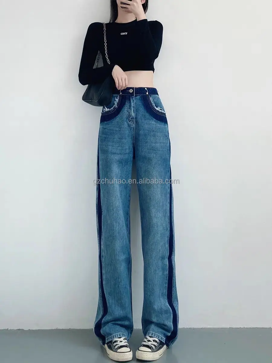 2026 New Women's Fashion Wide Leg Jeans Breathable Denim Pants with Sexy Straight Style Waist Logo Casual Freight Girl Design