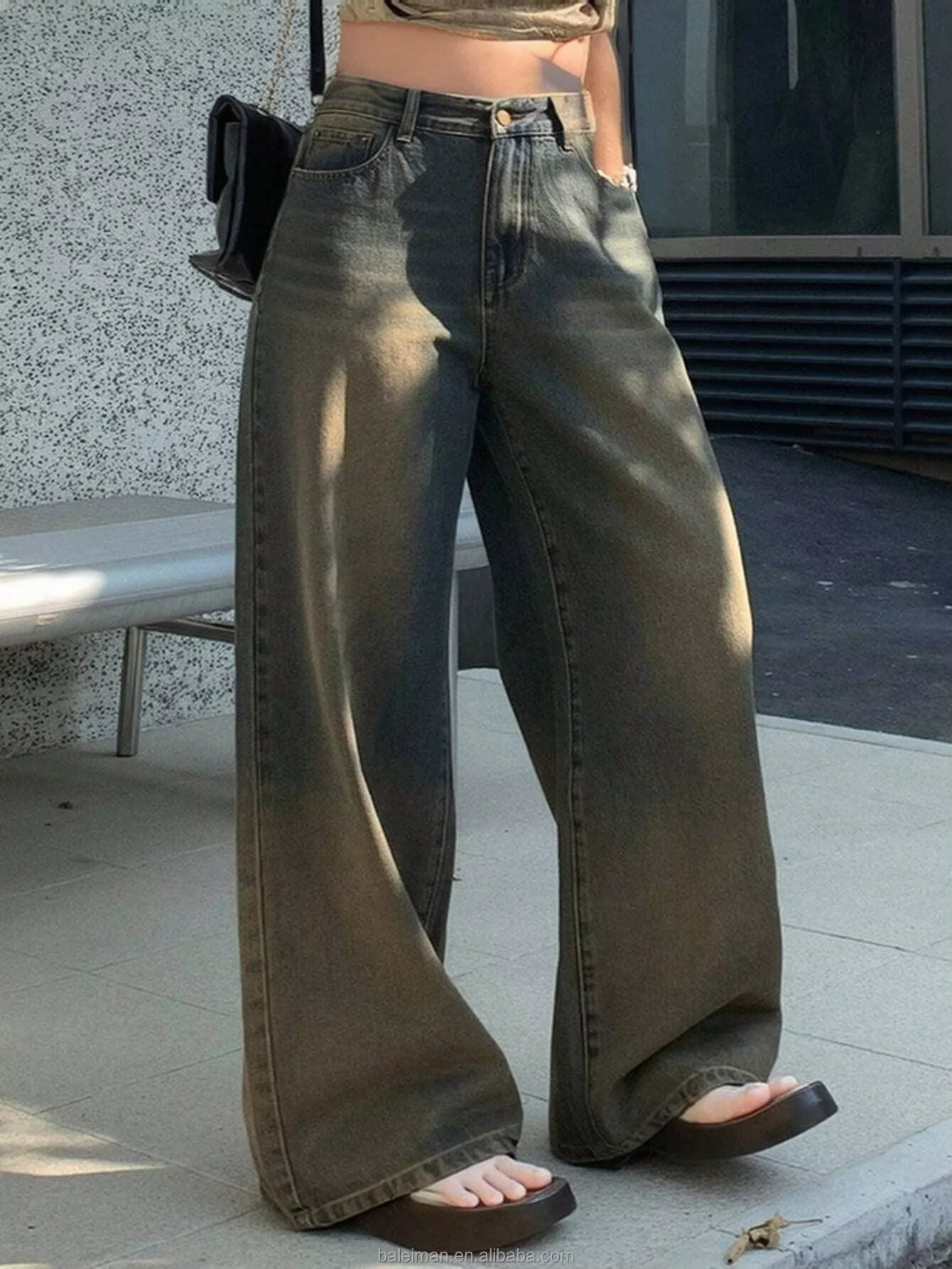 Women's Casual Loose-Fitting Denim Overalls Mid-Waist Jean Style Logo Dark New Arrival Summer Collection XL Size Wholesale End