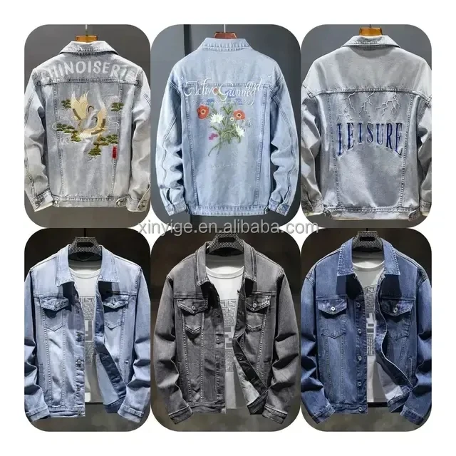 Wholesale Custom Logo Men's Denim Jacket Embroidery Ribbed Distressed Printing Europe America Blue Jean Jackets Windbreaker
