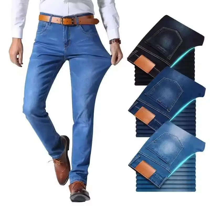 American Men's Jeans Vintage Washed Wide Leg Casual Pants for Spring/Summer Loose Straight Leg Formal Denim Style