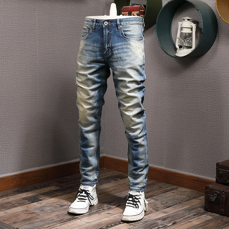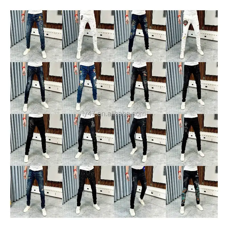 Men's Hip Hop Straight Denim Pants European and American Street Fashion Instagram Explosive 3D Stretch Jeans New Arrival