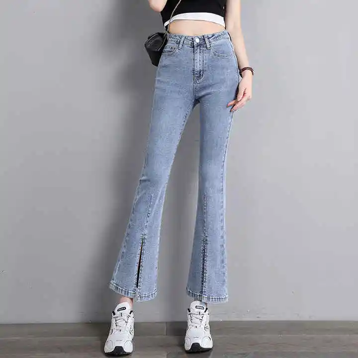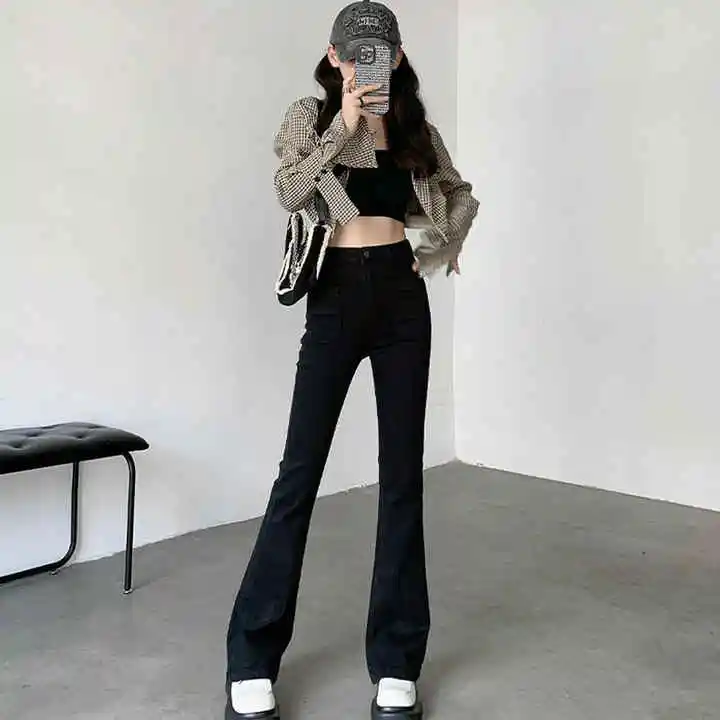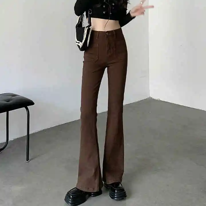 Women's Autumn Vintage Washed Denim Flare Pants Low-Waist Stretchy Loose Straight-Jeans for Comfortable Wear